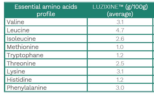 Luzixine™ is guaranteed to be GMO free, suitable for those on vegetarian and gluten-free diets and designed to be used directly as a food supplement or incorporated in the formulation thereof (Figure 3). It is particularly well suited to various applications in the food supplement market, as a super-food, or an alternative to animal proteins.