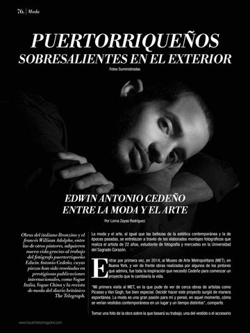 EDWIN ANTONIO CEDEÑO ENTRE LA MODA Y EL ARTE Por Lorna Zayas Rodríguez