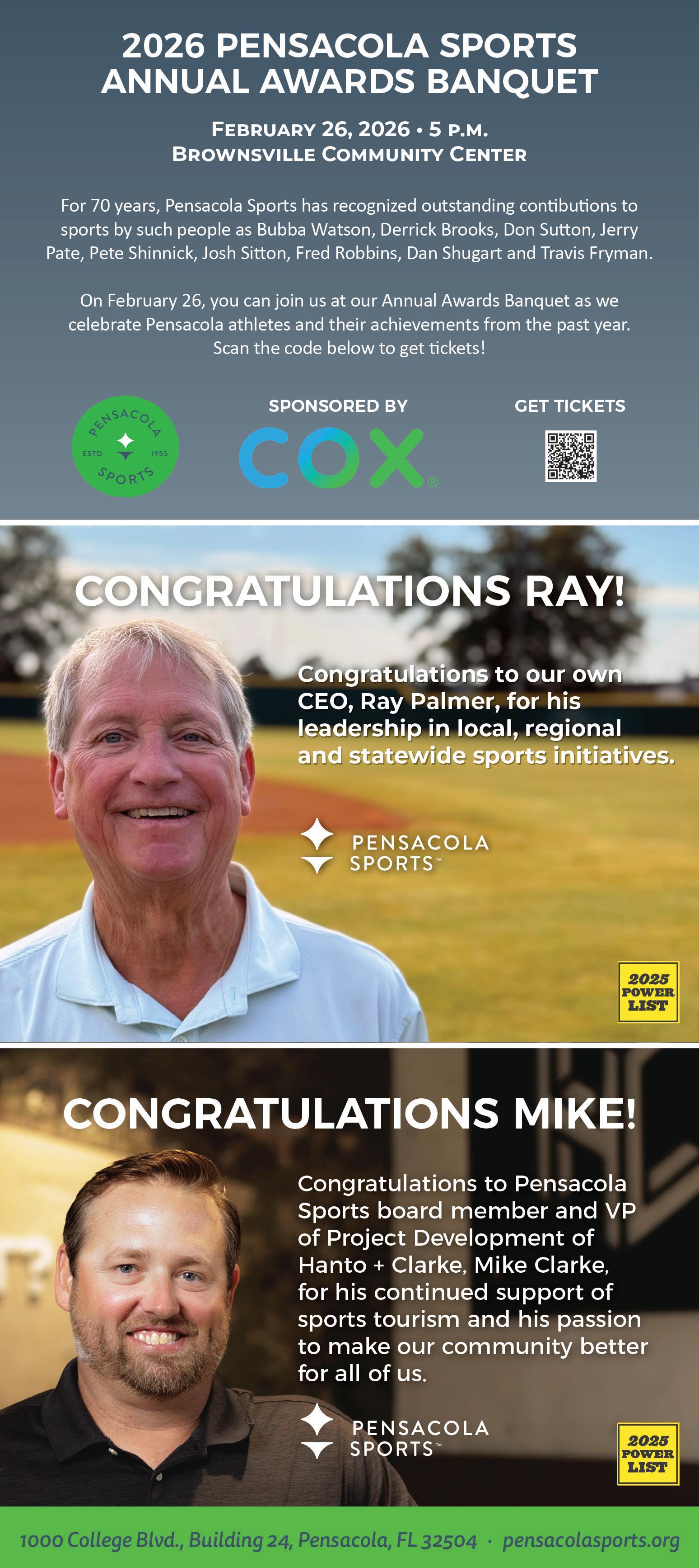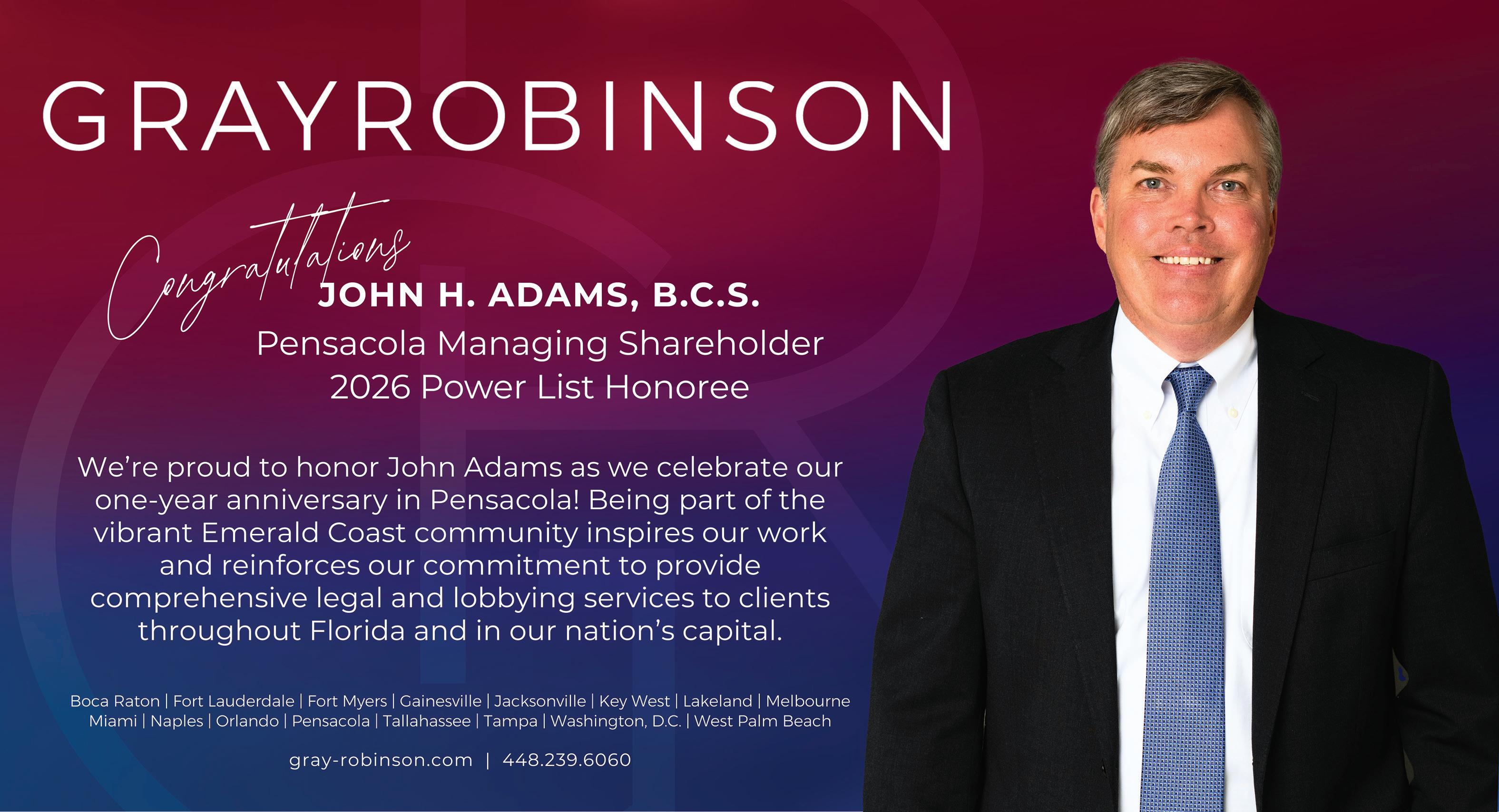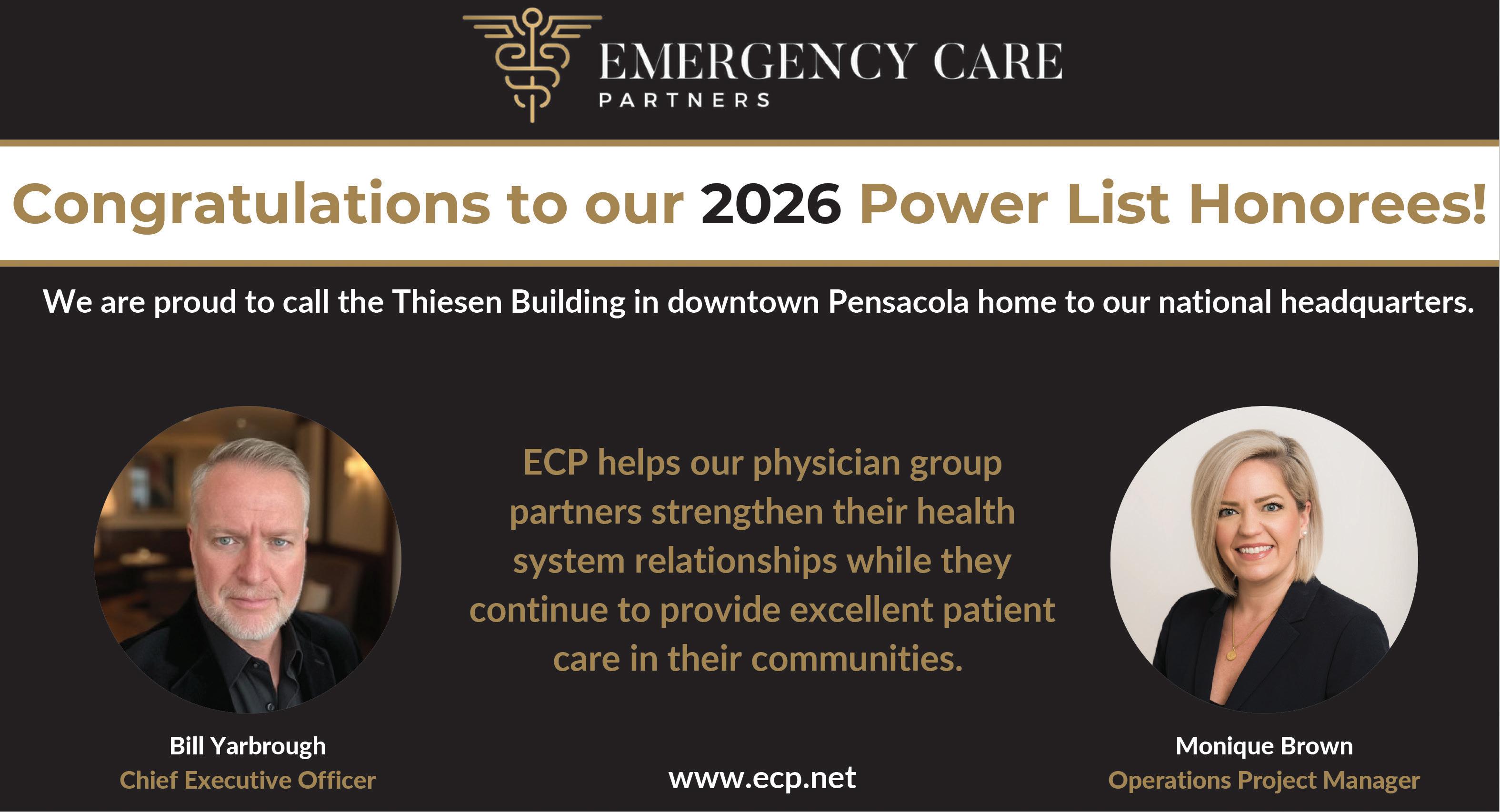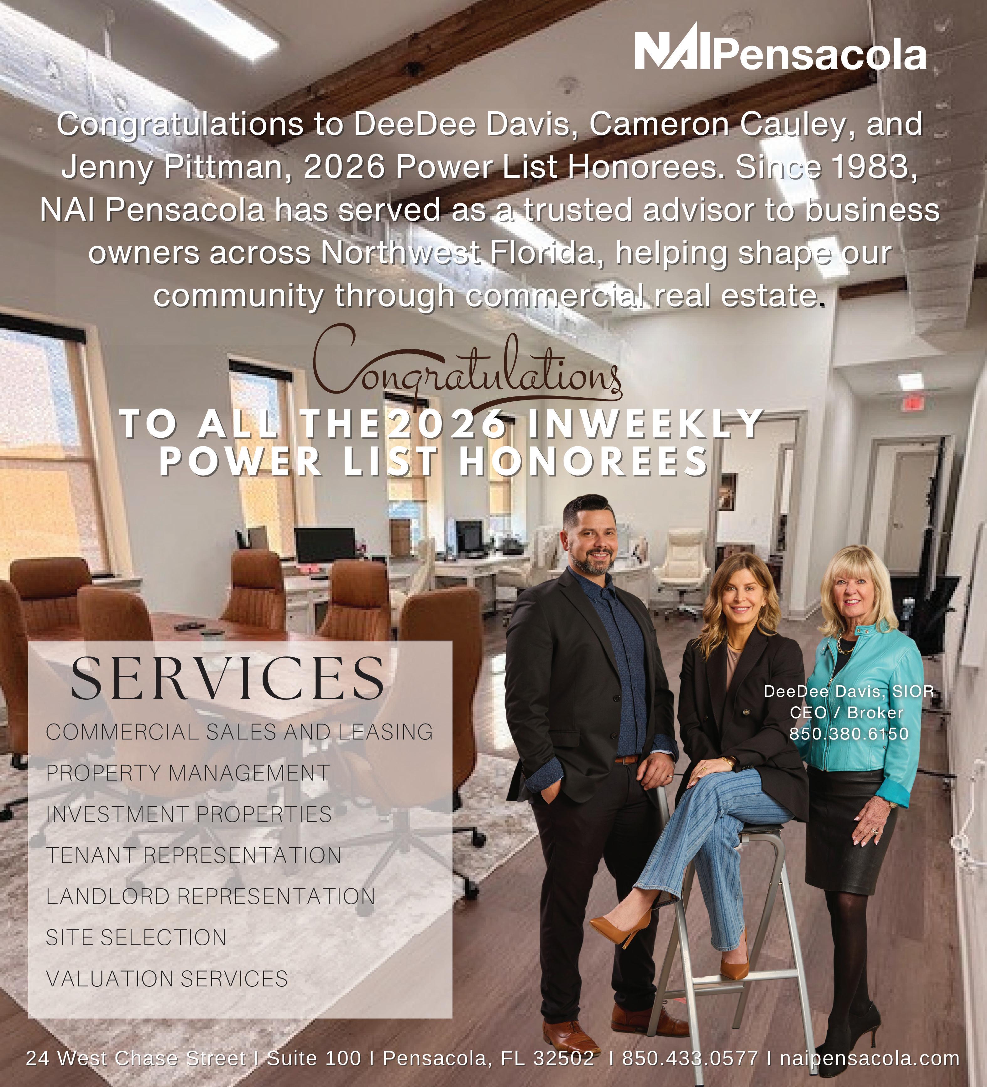 Though we rarely select elected officials, Sheriff Chip Simmons tops the 2026 Power List because he has transformed law enforcement in Northwest Florida while building unprecedented trust with the community. Sheriff Simmons' leadership style and commitment to innovation, technology and community engagement have improved public safety throughout Escambia County. His unopposed run in 2024—a first in Escambia County's 200-plus-year history—reflects a level of public confidence rarely seen in modern politics.
