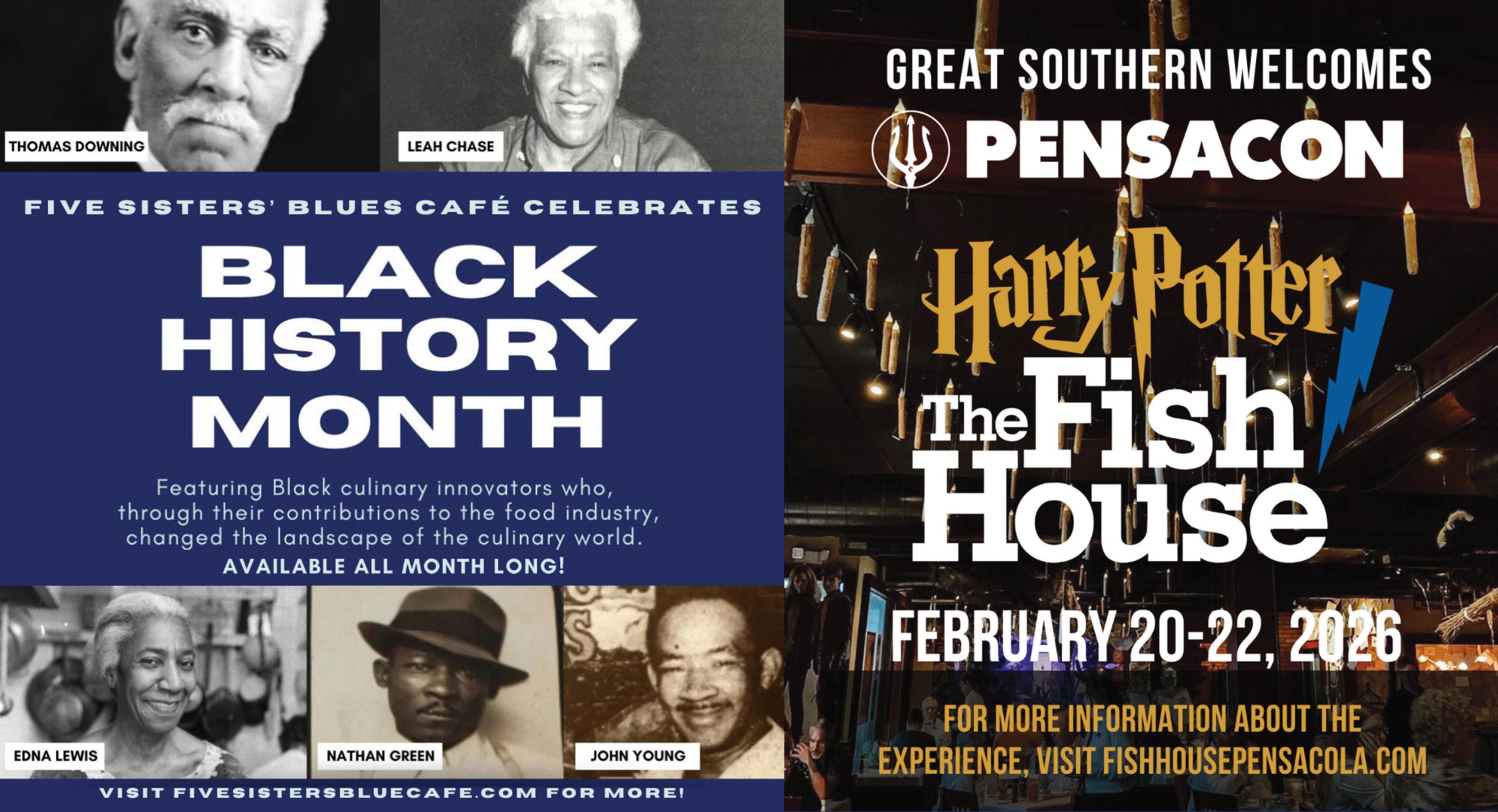 THE FISH HOUSE CELEBRATES PENSACON Visit The Fish House, 600 S. Barracks St., where the restaurant will be transformed into Harry Potter's Hogwarts School of Witchcraft and Wizardry from Feb. 20-22. Enjoy photo ops and drink specials such as the Goblet of Fire available starting at 11 a.m. all weekend long. Visit greatsouthernrestaurants.com for details.