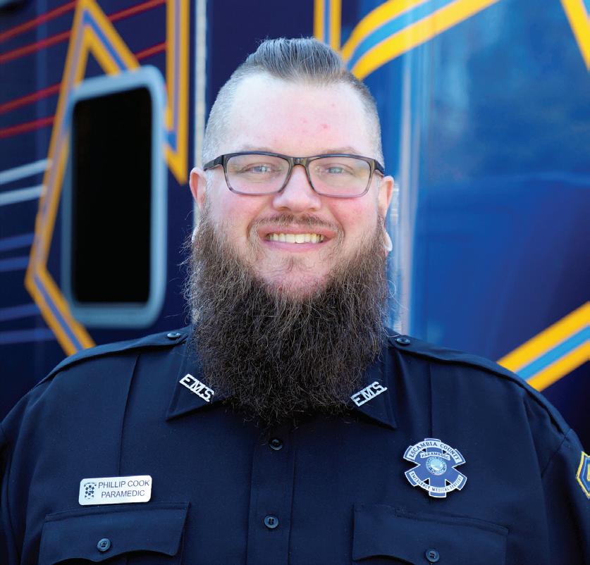 PHILLIP COOK The Florida Ambulance Association named Escambia County EMS Paramedic Phillip Cook a 2026 Star of Life recipient during a ceremony Feb. 4 at the Florida State Capitol. Cook earned the honor for his actions on Oct. 27, 2025, when he and partner EMT Isabella Gorne were diverted to transport a pediatric trauma patient after foggy conditions grounded air medical transport. During the long-distance transport, Cook detected rapidly deteriorating conditions, initiated lifesaving care and made the critical decision to divert to a Miramar Beach hospital when the patient needed resources unavailable on an ambulance. The patient survived. Cook has served Escambia County EMS since 2008.