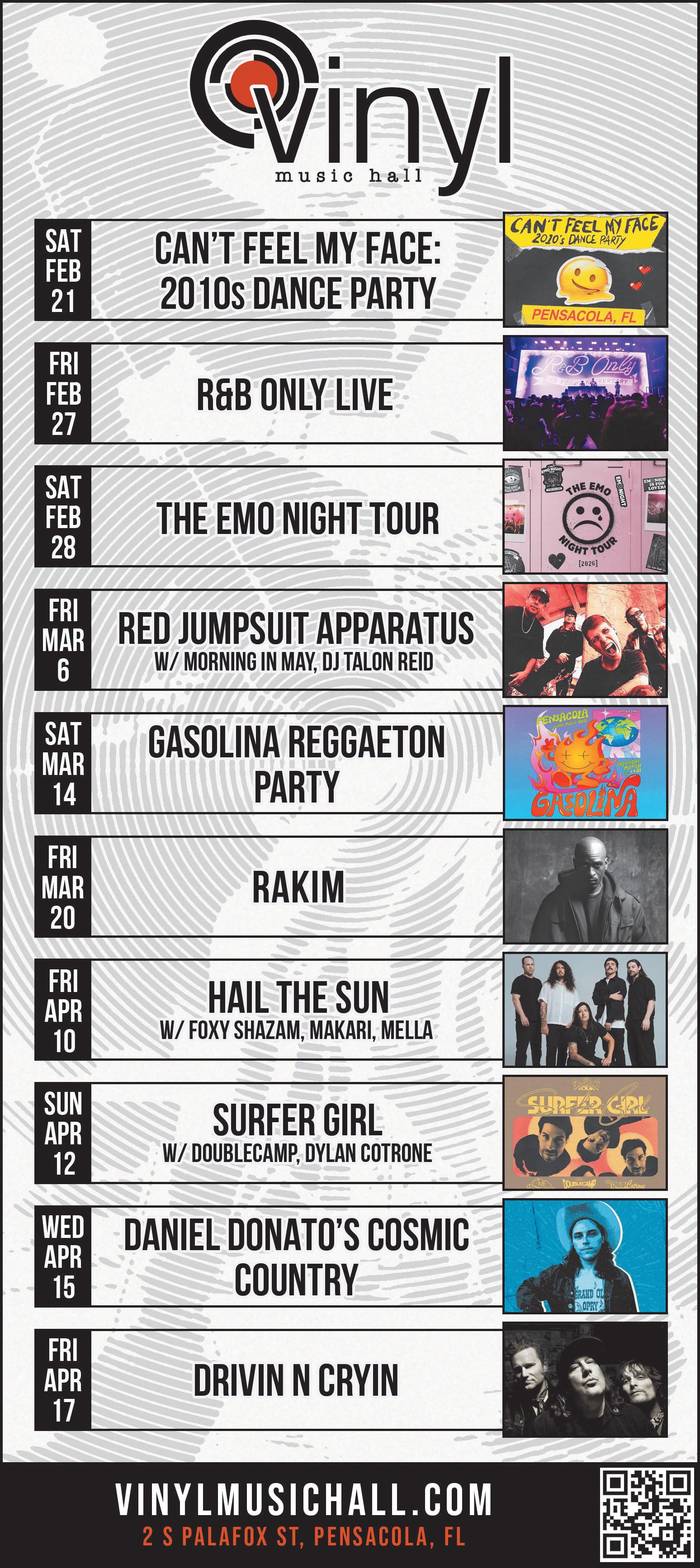 CAN'T FEEL MY FACE: 2010S DANCE PARTY Show is 9 p.m. Saturday, Feb. 21 at Vinyl Music Hall, 2 S. Palafox St. Tickets are at vinylmusichall.com.