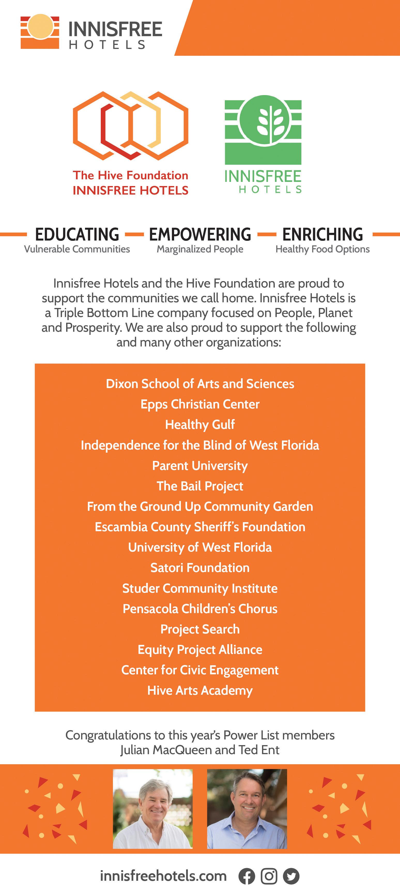 One Pensacola publication seeks to measure the unmeasurable—publishing an annual roster of the influencers, power brokers and leaders who define our corner of Florida. The Inweekly Power List was born during a casual conversation at Atlas Oyster House in May 2007, when someone posed a deceptively simple challenge: what locals could move mountains with a single phone call?
