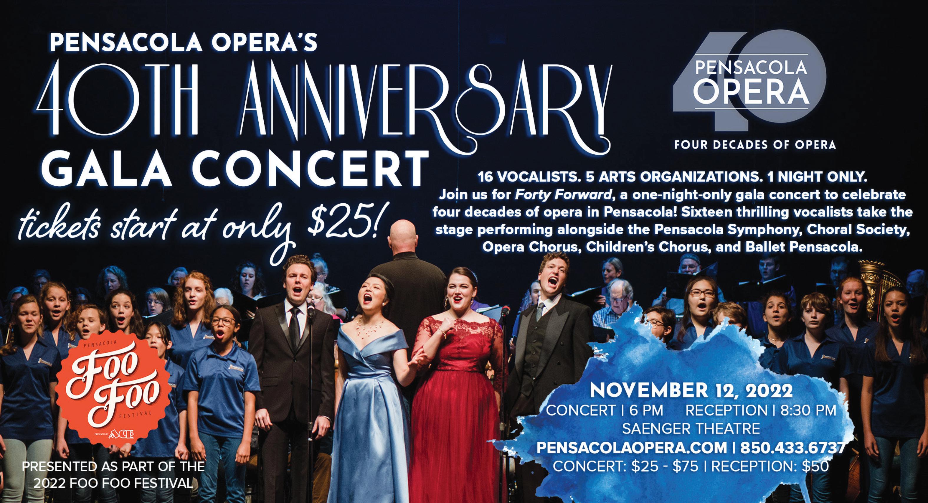 FORTY FORWARD: CELEBRATING 40 YEARS OF OPERA IN PENSACOLA Presented by Pensacola Opera | Nov. 12