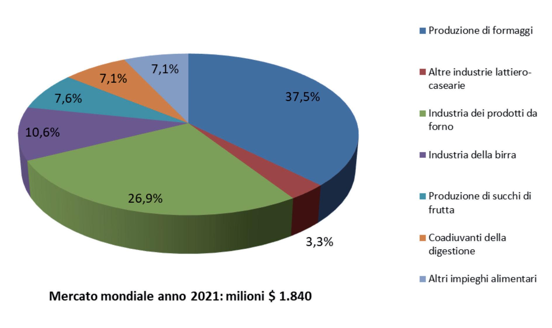 A livello mondiale il mercato degli enzimi per impieghi nell’industria ali mentare e delle bevande è previsto