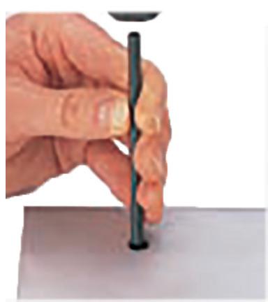 Il pre-foro è realizzato grazie ad una semplice punta per trapano. Dopodichè sbavare o smussare il diametro esterno dello smusso che deve essere inferiore o uguale al diametro esterno della maschiatura.
