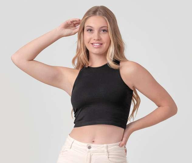 • Collo con costina in cotone/Lycra® e fettuccia interna dello stesso tessuto del capo