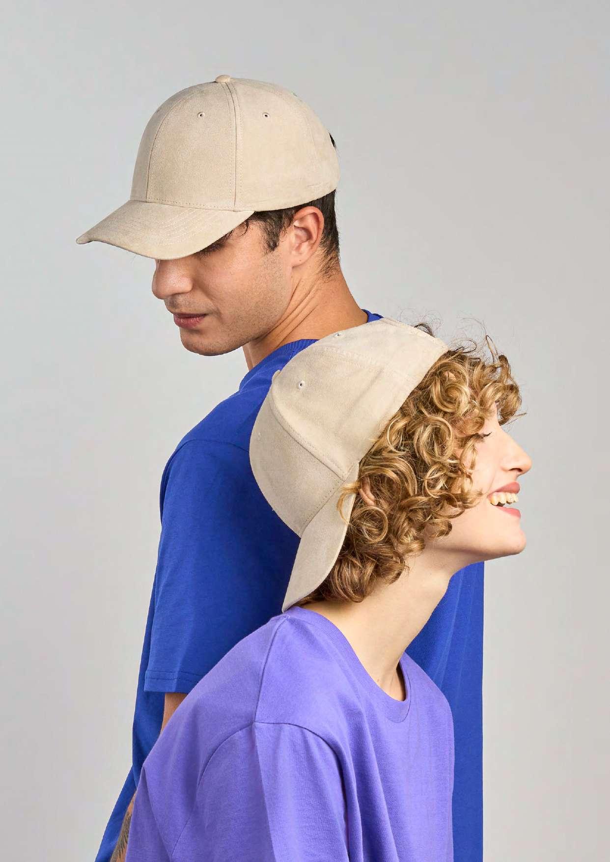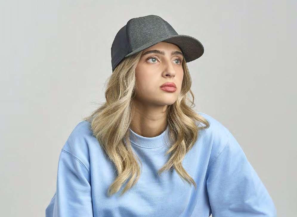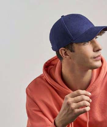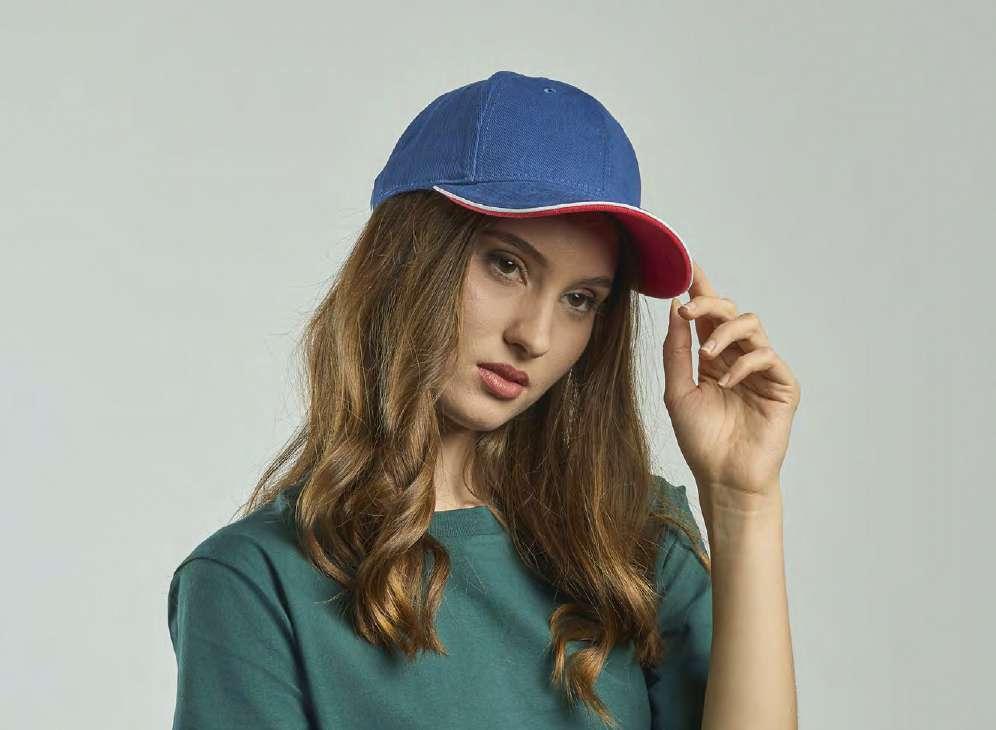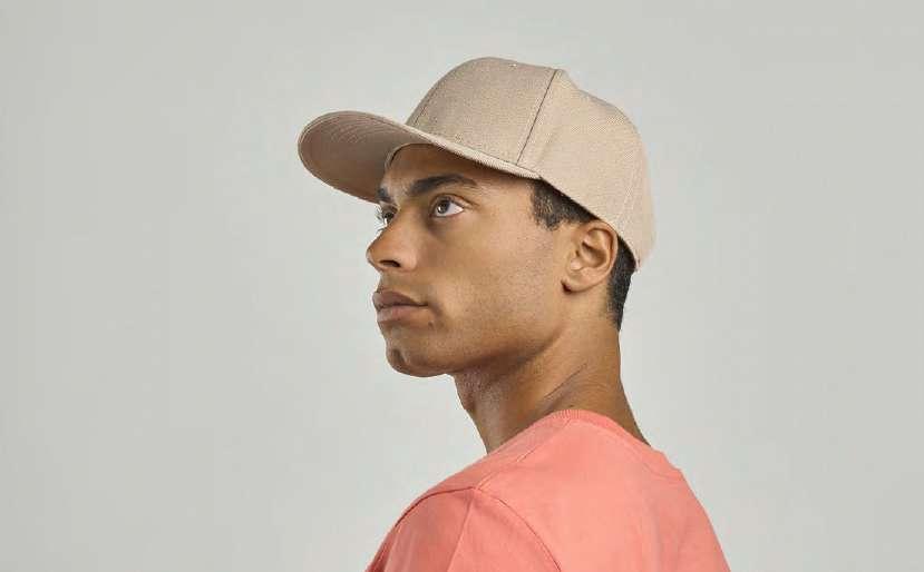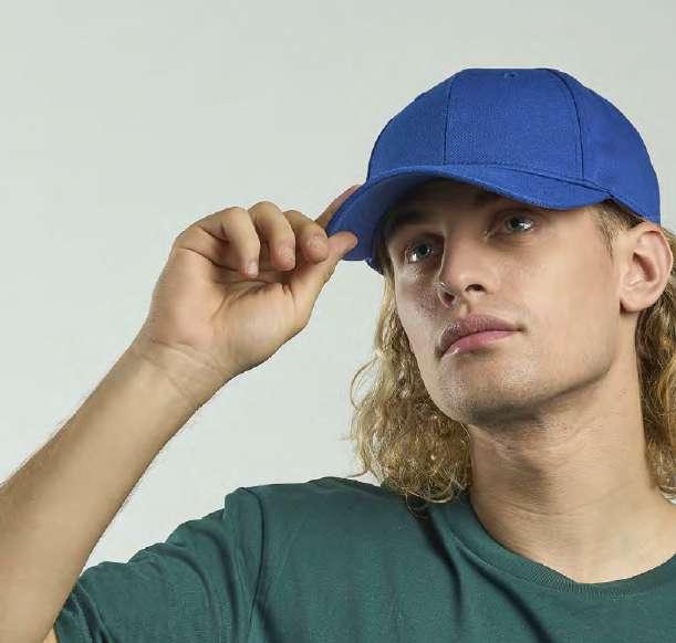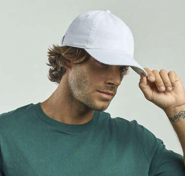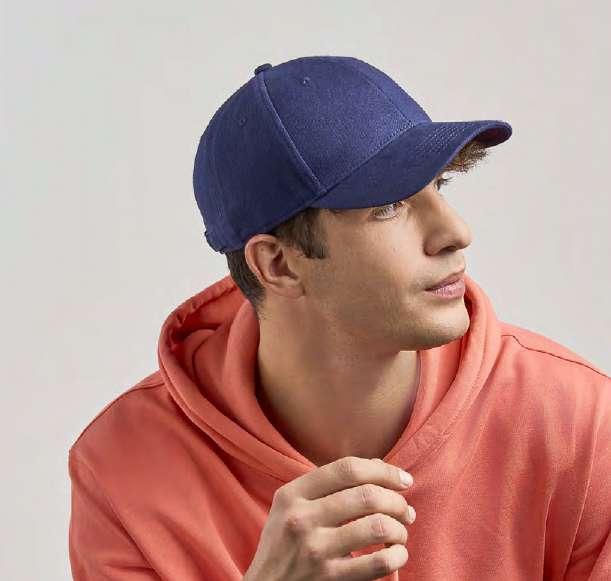 TAGLIA UNICA · 275 GSM · FIBBIA A SCATTO CON FORO CUCITO VISIERA CURVA · PANNELLO FRONTALE STRUTTURATO · PANNELLO SANDWICH SULLA VISIERA PESANTE SPAZZOLATO