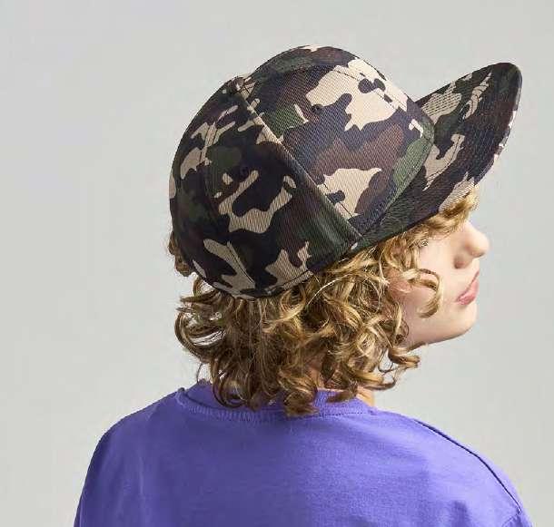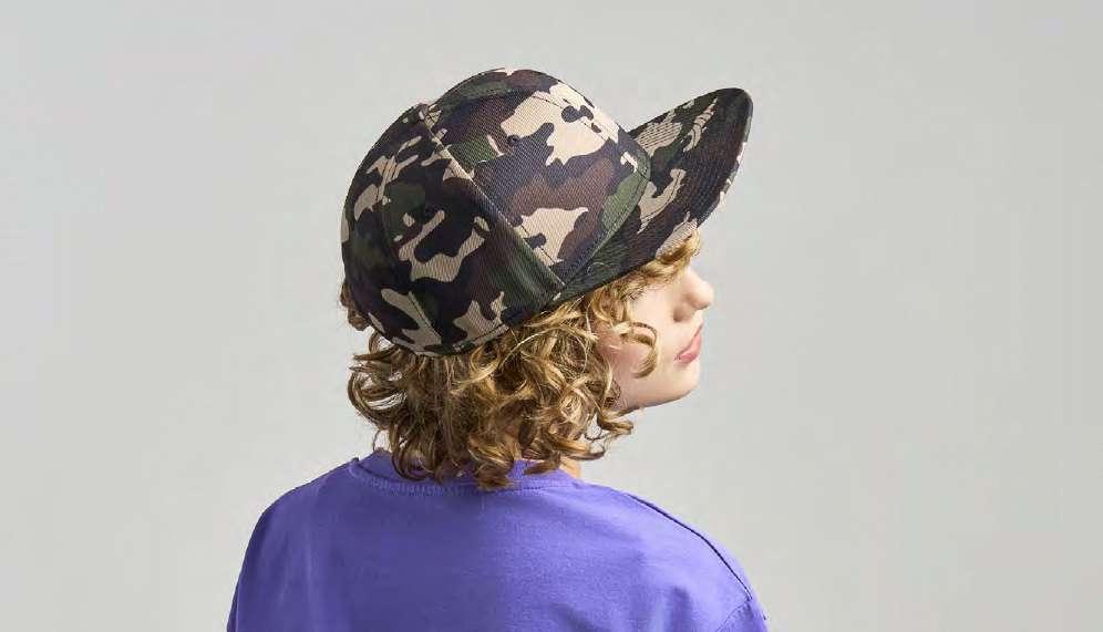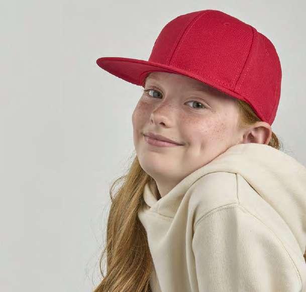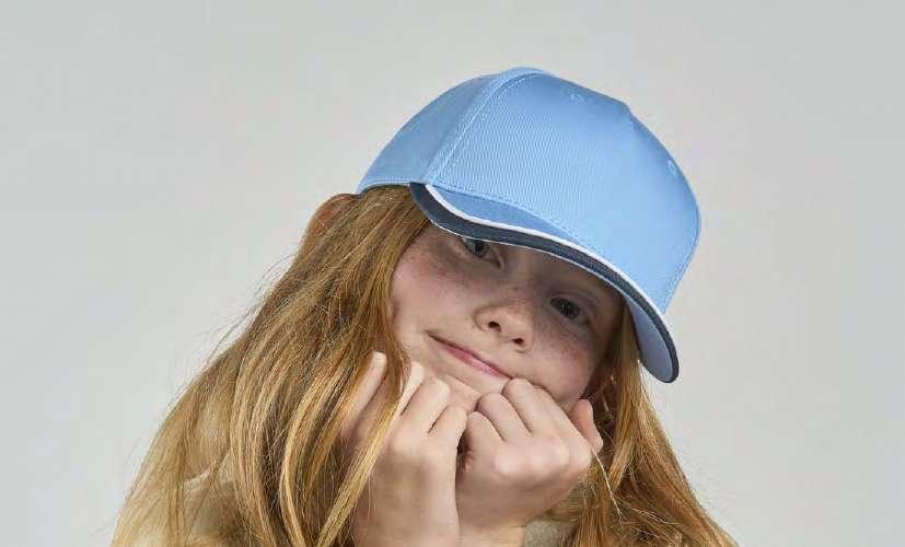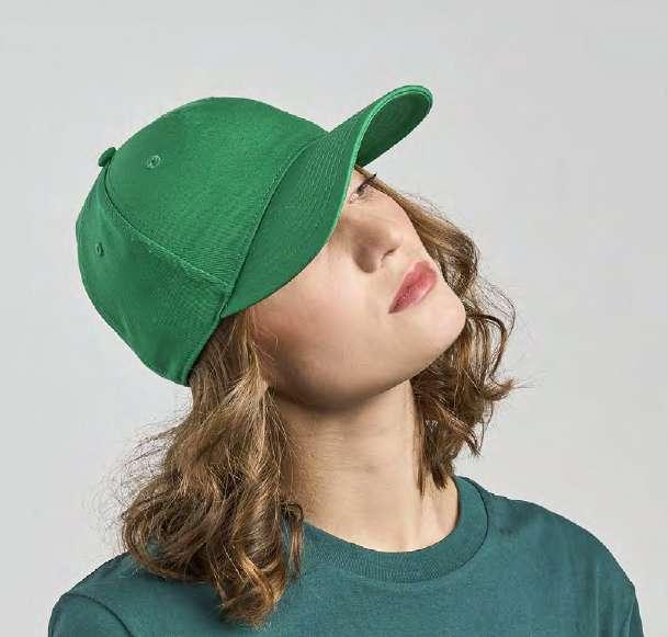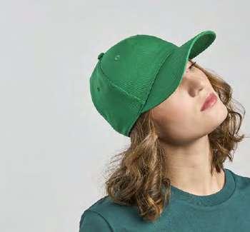 TAGLIA BAMBINI · 260 GSM · CHIUSURA A GANCIO E ANELLO VISIERA MEDIA · LAVAGGIO INDUMENTI FASCIA SUDORE IN TESSUTO AUTONOMO RIDUZIONE DELL’IMPATTO: -10% CO2eq*
