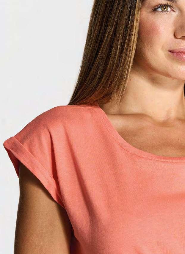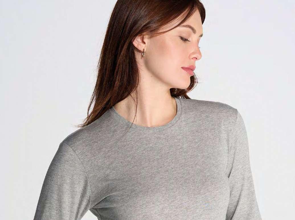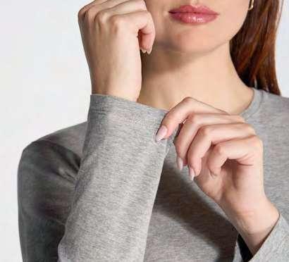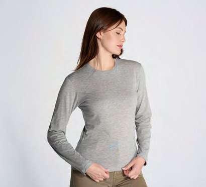 T-shirt donna manica lunga. Doppia cucitura su giromanica e orlo. Collo in costina 1X1.