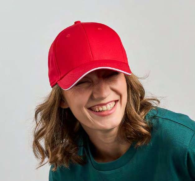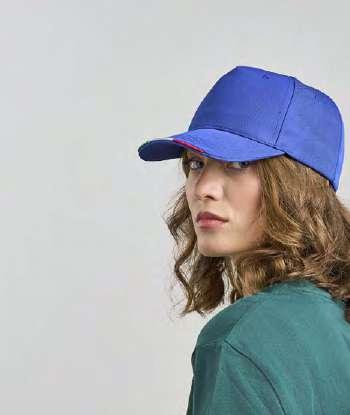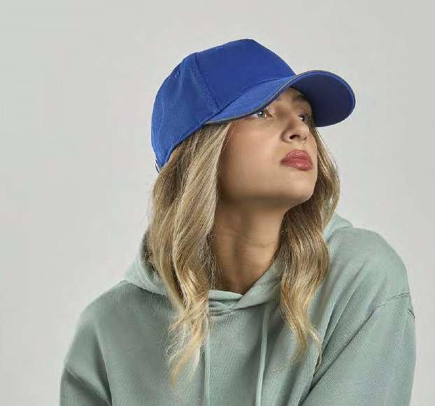 TAGLIA UNICA · 280 GSM · FIBBIA INTERAMENTE IN METALLO CON FORO IN METALLO VISIERA MEDIA · PANNELLO FRONTALE NON STRUTTURATO · LAVAGGIO DEI CAPI