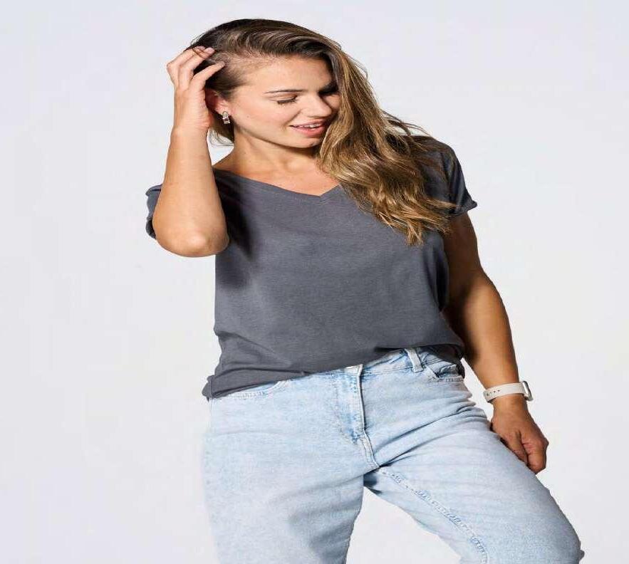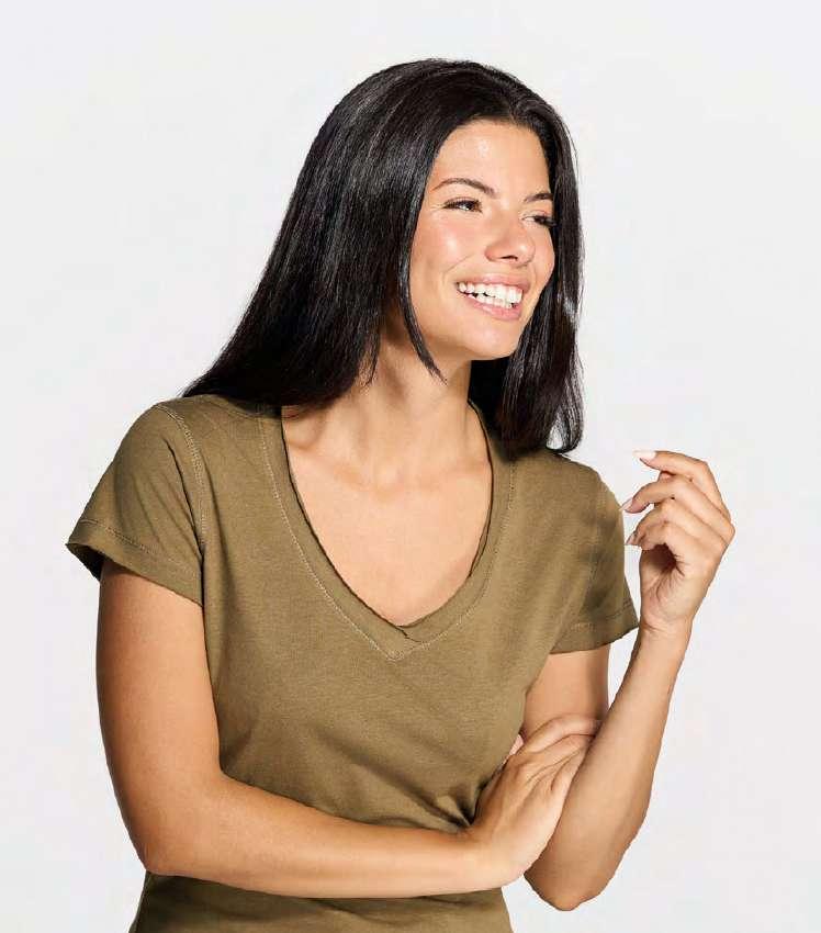 T-shirt donna manica corta. Semi-attillata. Doppia cucitura su giromanica e orlo. Single Jersey.