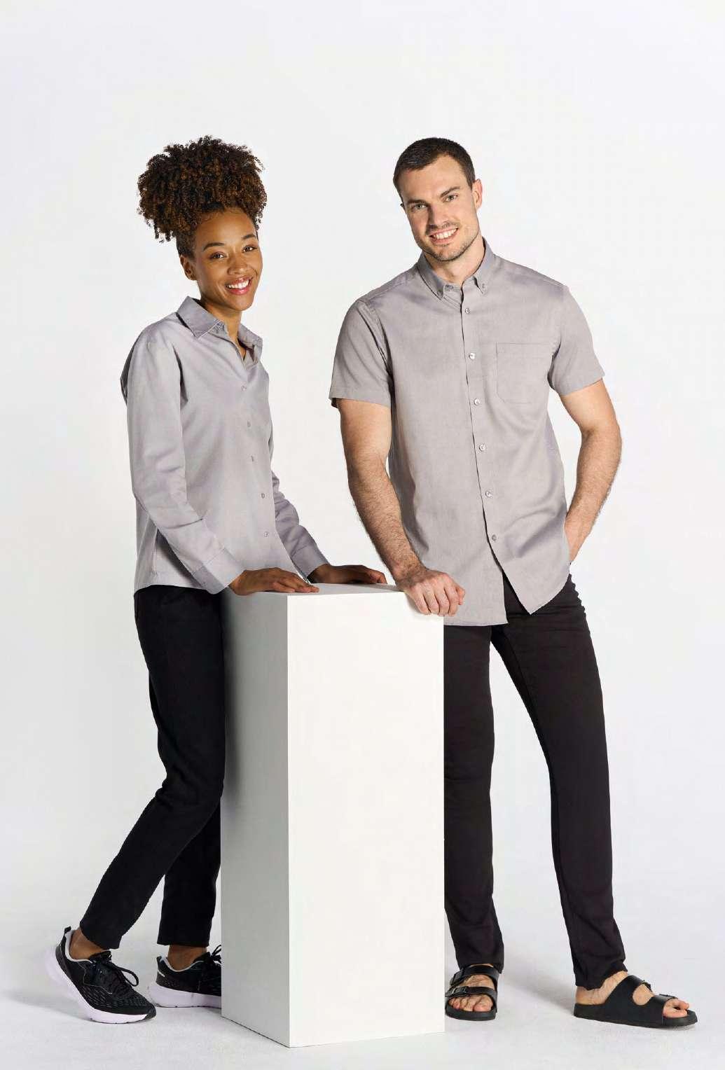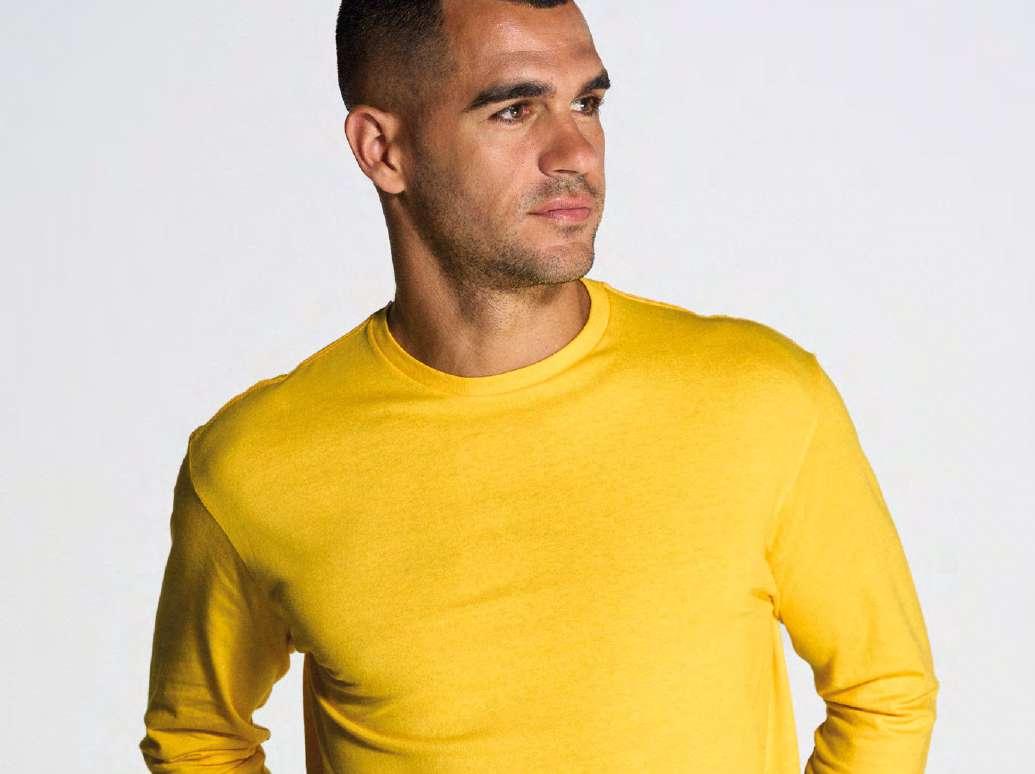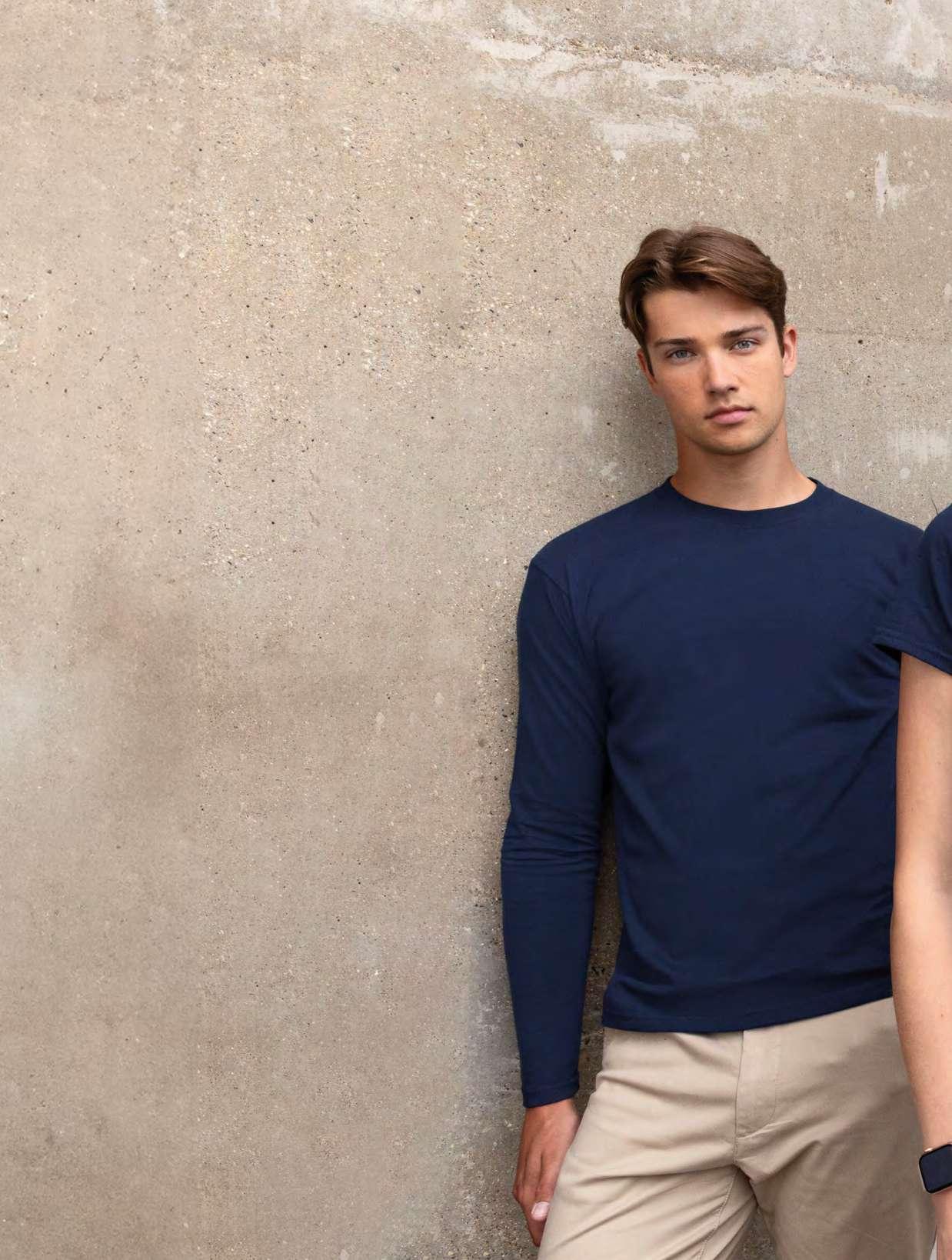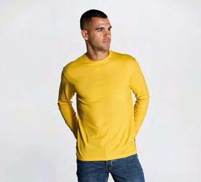 T-shirt uomo manica lunga. Doppia cucitura su giromanica e orlo. Nastro di rinforzo da spalla a spalla. Collo in costina 1X1.