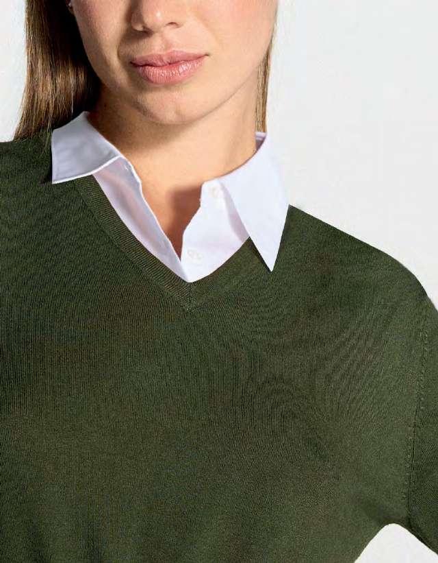 Nastro di rinforzo da spalla a spalla. Collo in costina 1X1.