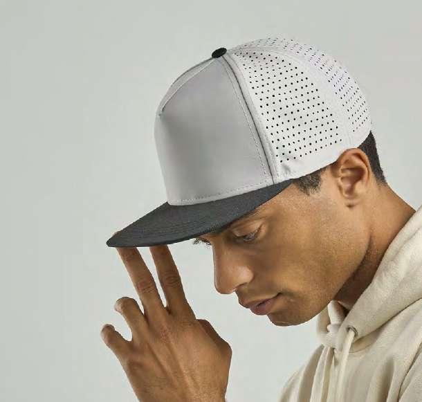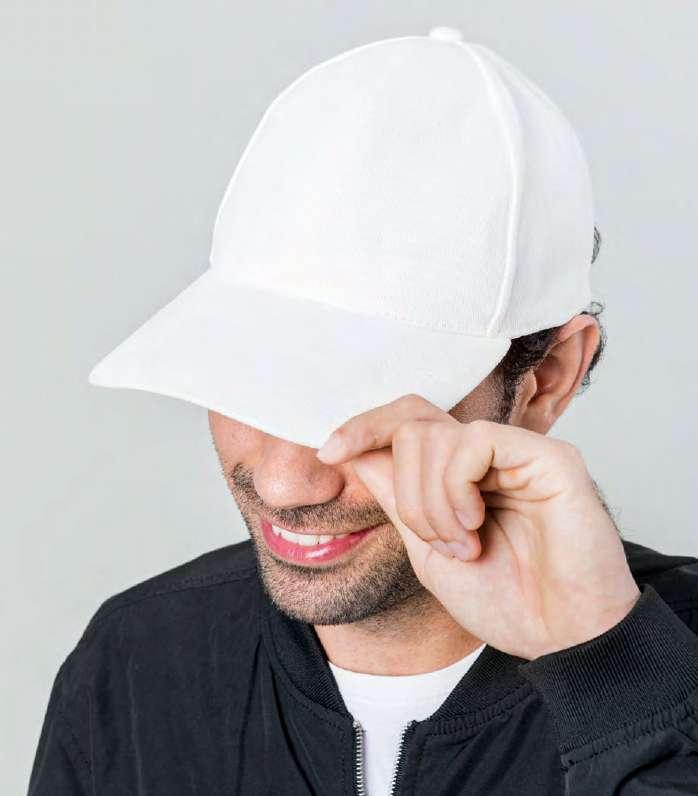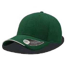 TAGLIA UNICA · 170 GSM · CHIUSURA A GANCIO E ANELLO DI ALTA QUALITÀ VISIERA CURVA · TESSUTO ELASTICIZZATO · FASCIA ANTISUDORE DRY-TECH VISIERA RICICLATA RETRAZE® SOLO SU RICHIESTA