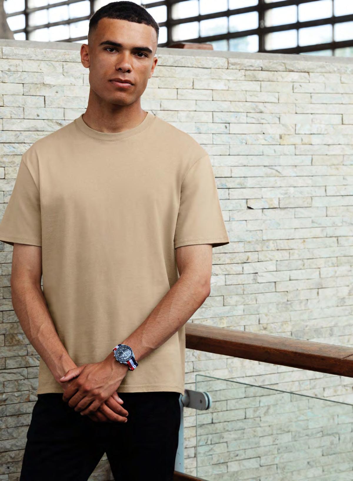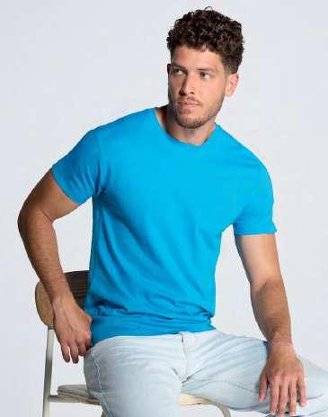 T-shirt uomo manica corta. Tessuto tubolare. Doppia cucitura su giromanica e orlo. Nastro di rinforzo da spalla a spalla. Collo in costina 1X1. Camiseta tratada para impresión digital.