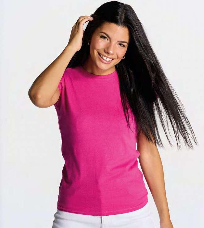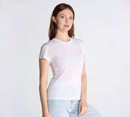 T-shirt donna manica corta. Semi-attillata. Doppia cucitura su giromanica e orlo.