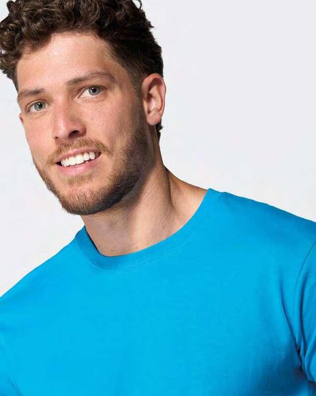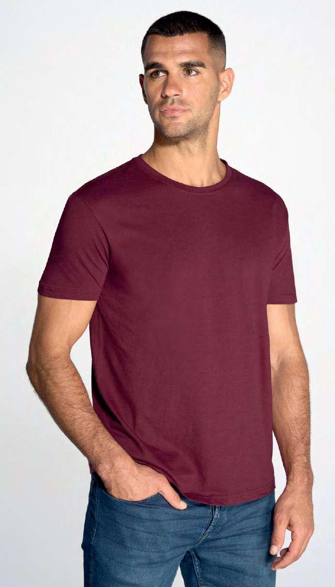 T-shirt uomo manica corta. Tessuto tubolare. Doppia cucitura su giromanica e orlo.