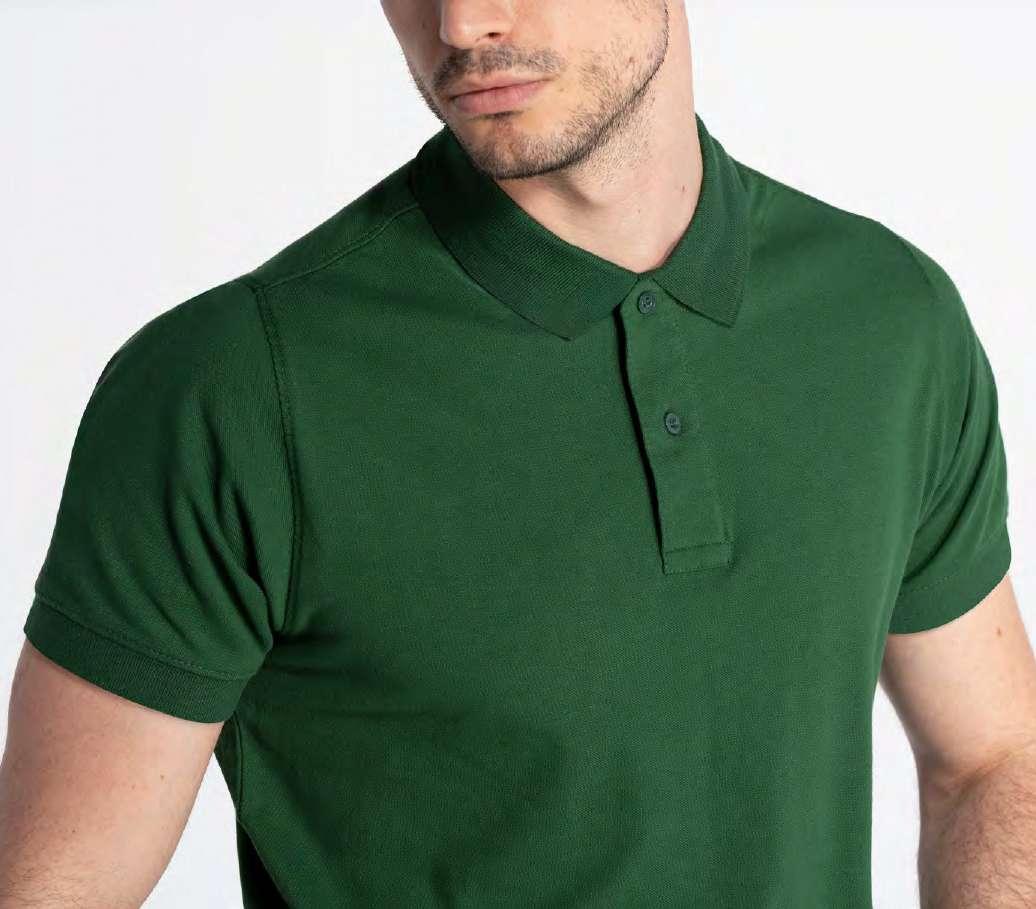 Polo uomo manica corta. Tessuto piqué. Abbottonatura con 2 bottoni. Collo in costina 1X1. Senza spacchetti laterali.