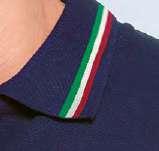 Chiusura a due bottoni in tinta. Spacchetti laterali rinforzati. Costina 1x1 su collo e giromanica. Piping tricolore su colletto e giromanica. COMPOSIZIONE: 100% Cotone pettinato