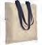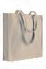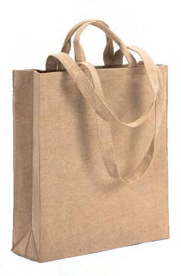 Borsa shopper in cotone riciclato 280 g/m² con effetto mélange. Manici lunghi e soffietto alla base.
