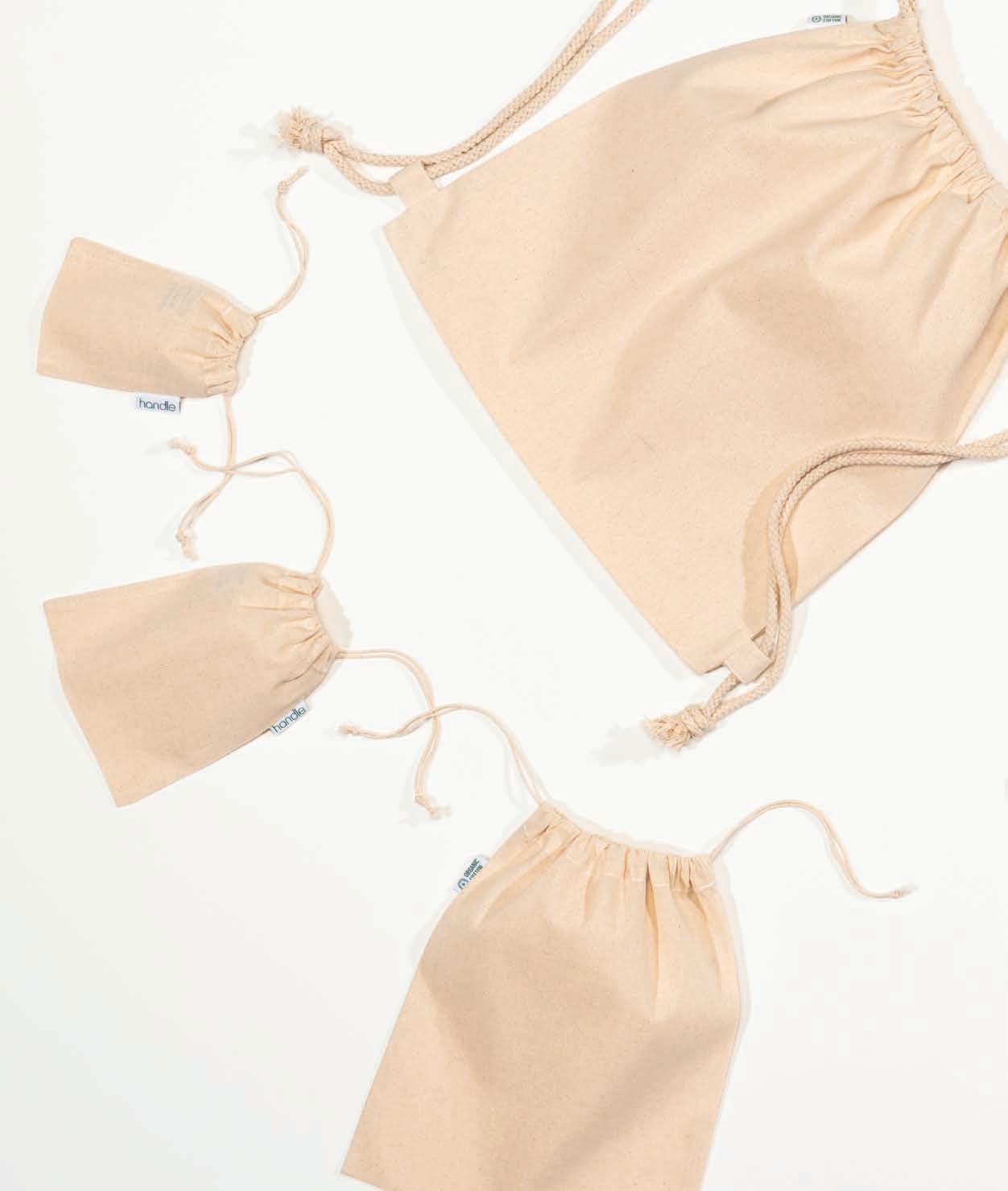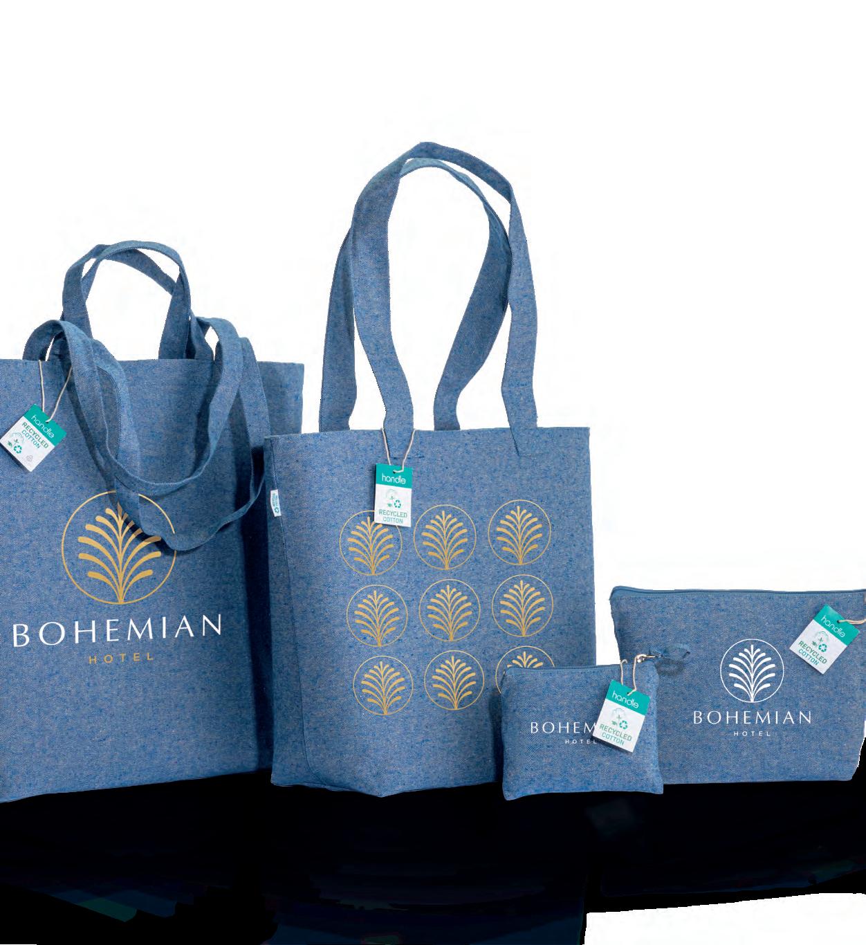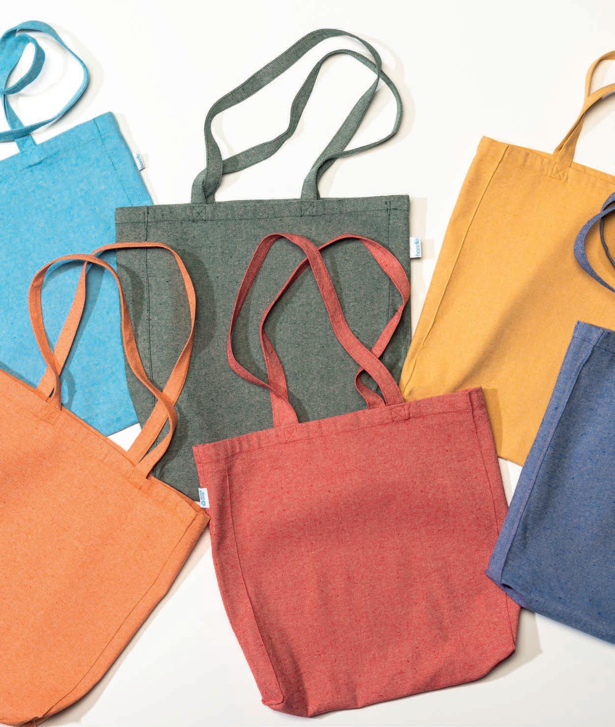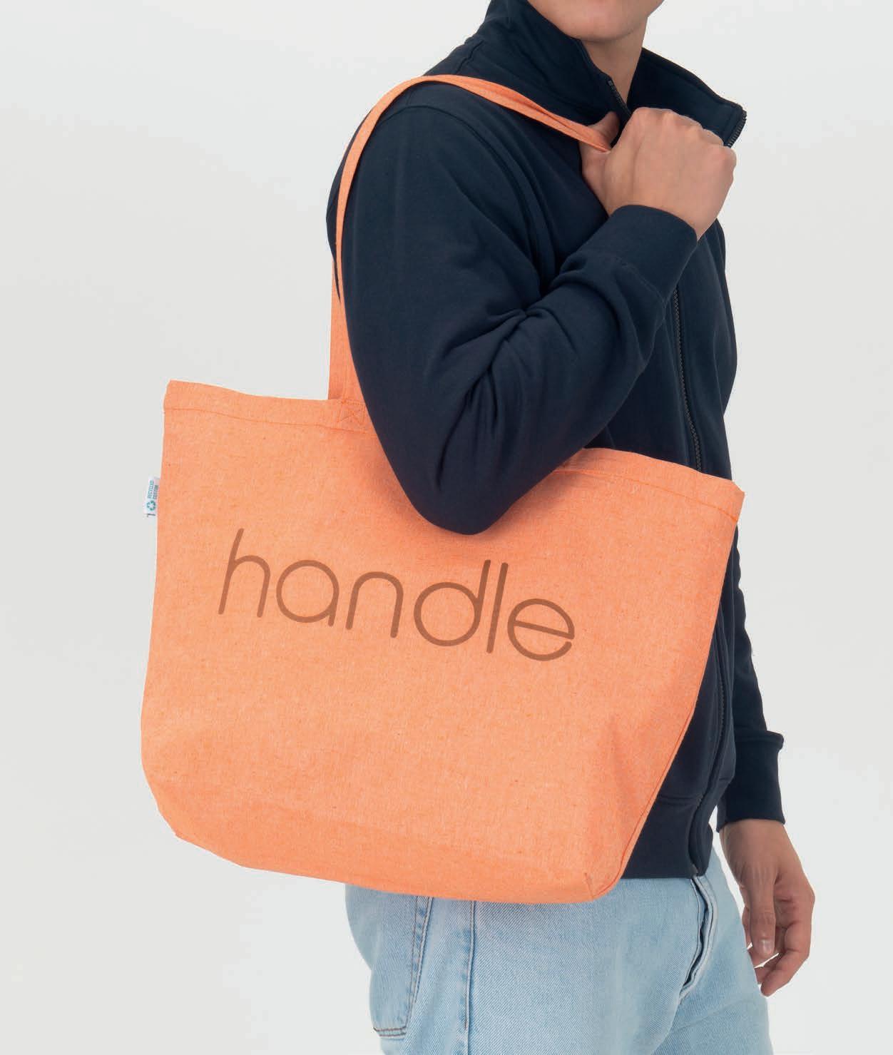 Tutti gli articoli in cotone riciclato della collezione Handle Bags sono certificati GRS, assicurando ai consumatori un prodotto sostenibile e di alta qualità.