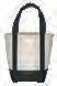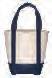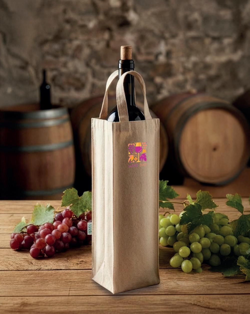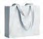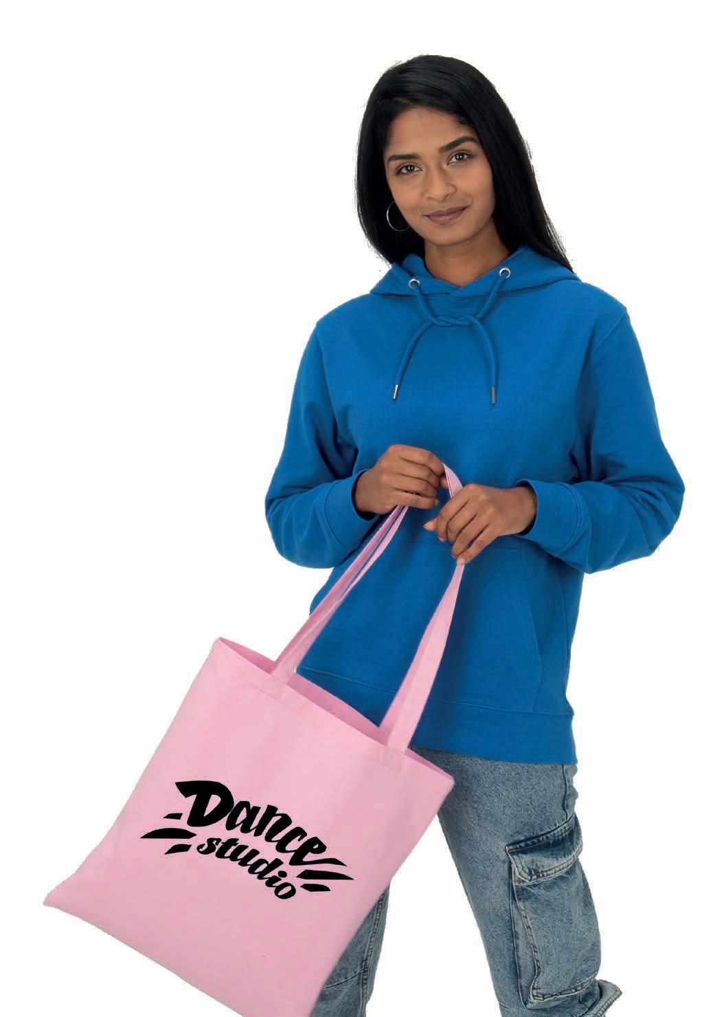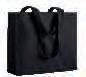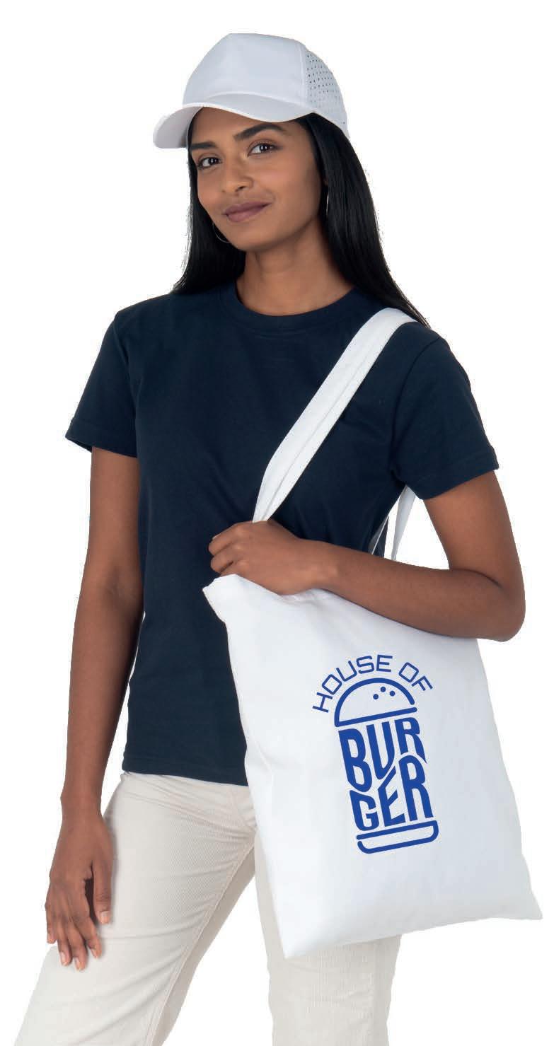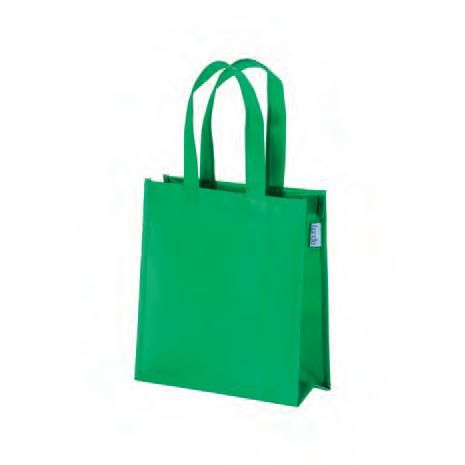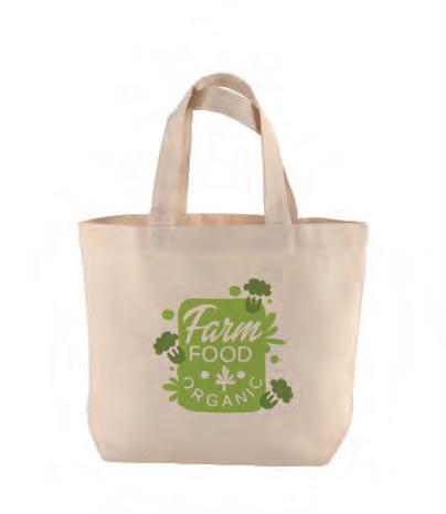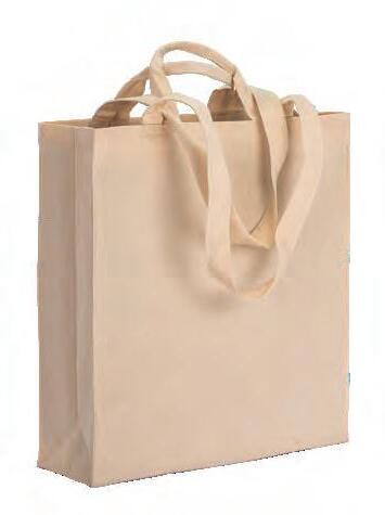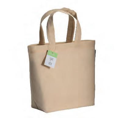 Mini borsa shopper in cotone riciclato 150 g/ m². Manici corti e soffietto alla base.