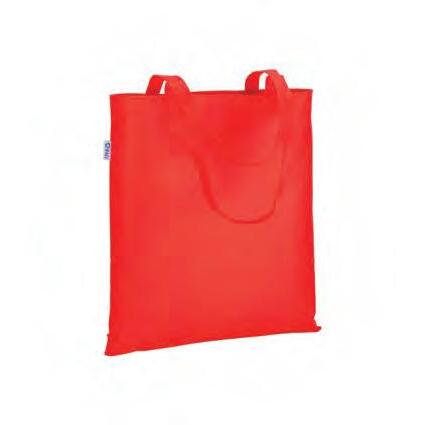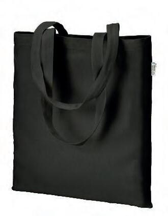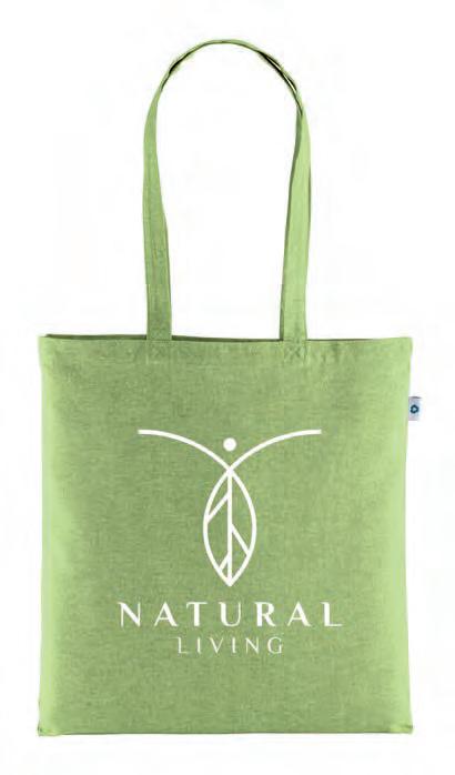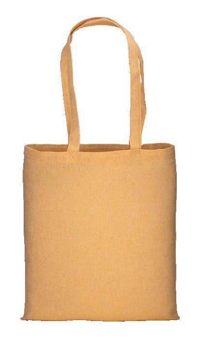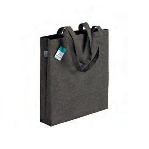 Borsa shopper in cotone riciclato 190 g/m² con effetto mélange. Manici lunghi e soffietto alla base.