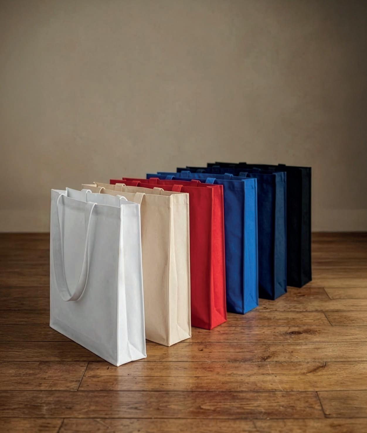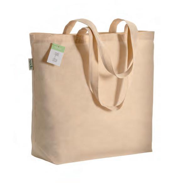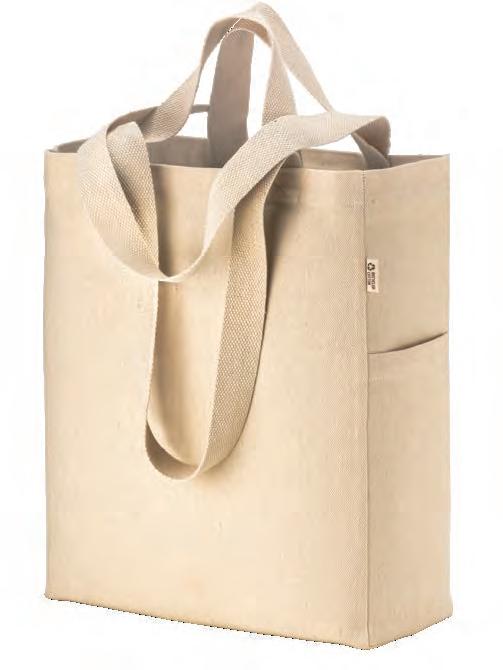 Borsa in cotone riciclato 280 g/m². Doppi manici, soffietto e tasca interna.