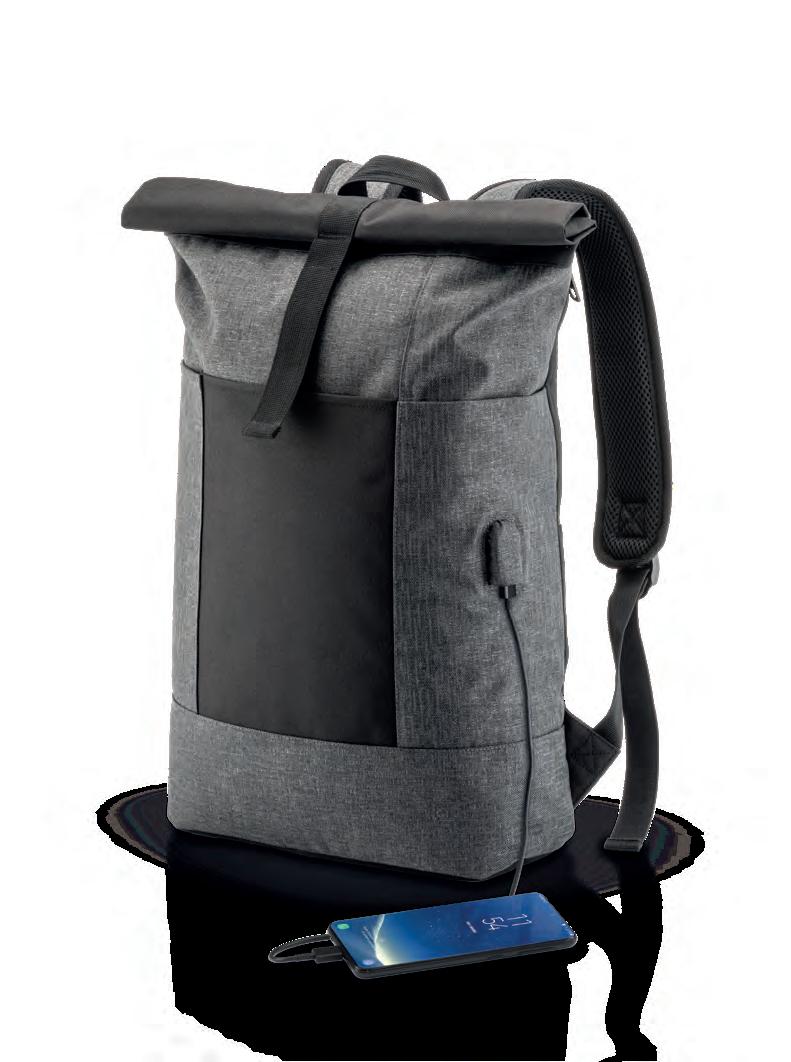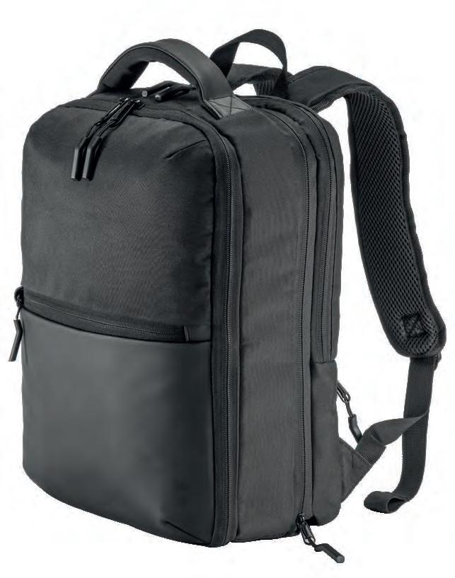 Zaino porta pc (15”) in canvas 380 g/m² con inserti in soft PU ad alta visibilità.