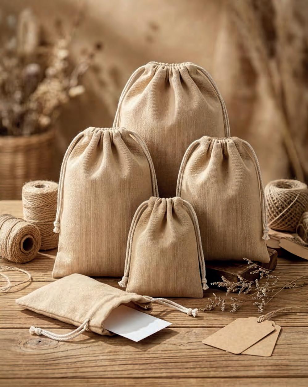 La nostra collezione è composta da borse tote-bag, sacchetti regalo e zainetti con cordini suddivisi nei diversi materiali che li compongono:
