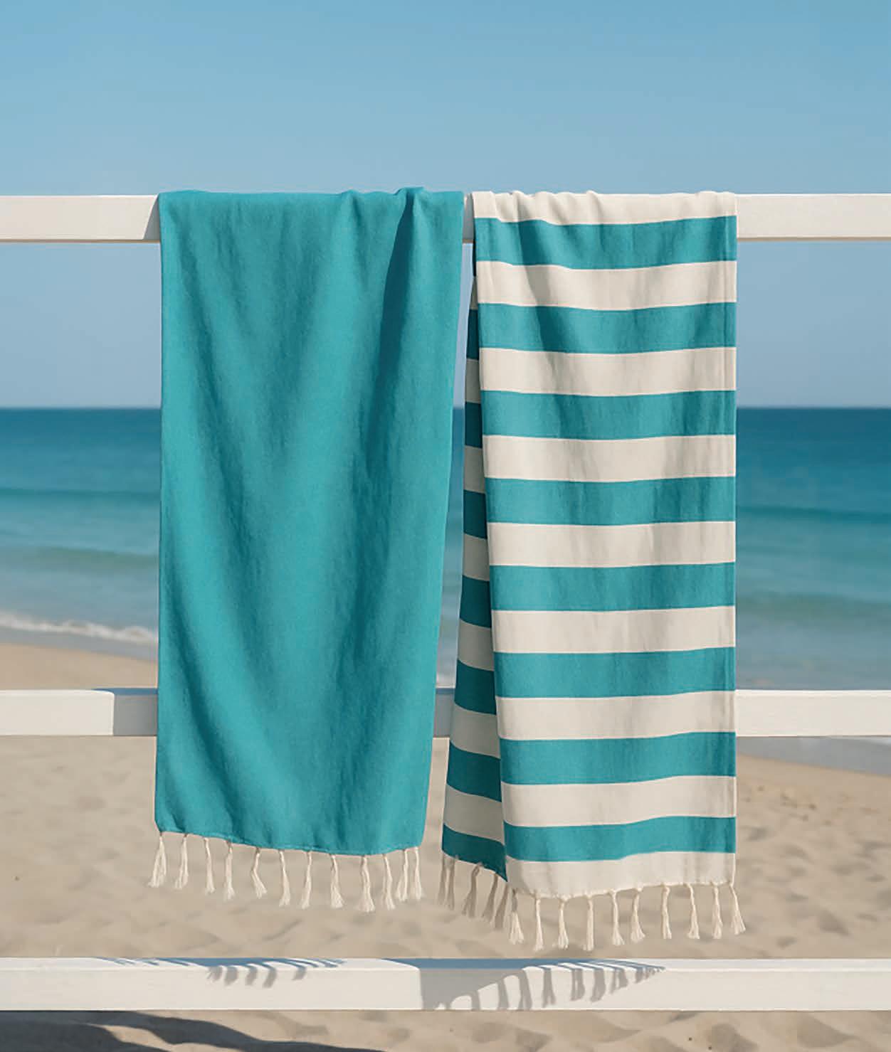 Telo mare in cotone riciclato 150 g/m². Effetto mélange e frange.