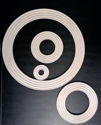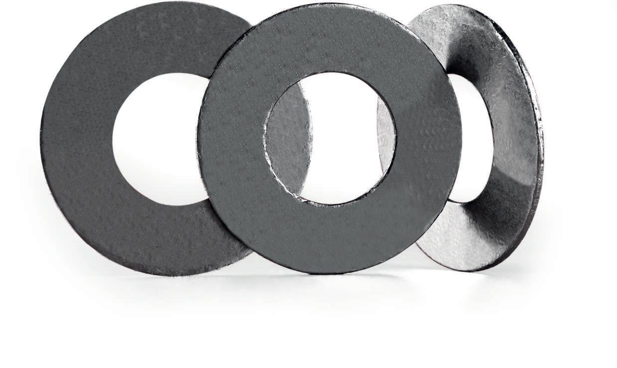 by Alessandro BignamiGaskets obtained from Texgraf® sheets in flexible expanded graphite, reinforced with stainless steel tanged foil, thickness 0.1 mm.