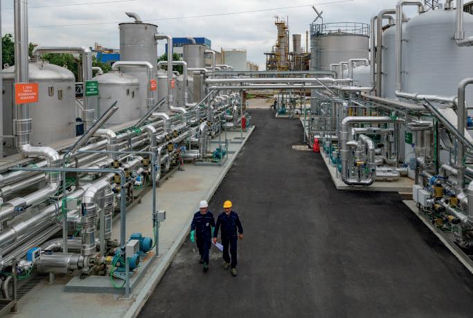 Regardless of whether they are designed to heat or cool down process es, most oil-circulating heat transfer systems in chemical and petrochem ical facilities still use group I miner al oils in this heavy-duty application. Group I mineral oils are derived from crude oil. The refining process uses a solvent which leaves impurities and hydrocarbon molecules of different sizes in the mixture. Some heat trans fer systems can use up to a hundred thousand liters of oil as a transfer me dium, which makes group I mineral oils with their affordable price attrac tive for chemical companies. In most cases, heat transfer systems are far from being perfectly designed. In the majority of the systems, the oil is subject to considerable stress, due to an intense localised heating source in combination with low flow velocity. The oil can also come into contact with the air in the expansion tank, causing it to oxidize and de grade faster. Group I oils contain un saturated hydrocarbons and asphal tene components that react with ox