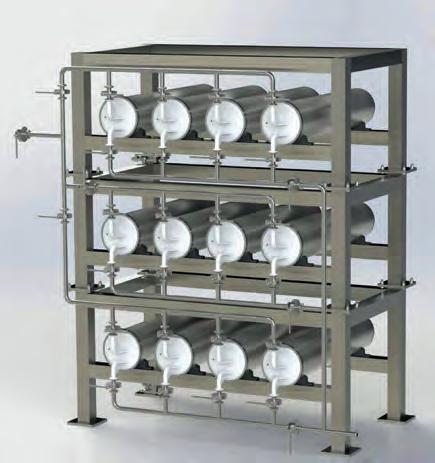 To manage the required flow, the inlet and outlet connections of the single modules of the system are located to the top of the fil- ter module with “TC” PP fittings; then the single modules are connected in parallel to a header of incoming product (tank) and to the header of the filtered product. The Filter modules are consisting of internal filter element contained in a plastic capsule fully sealed except for the inlet and outlet connections. This solution is preventing the leakage of any substance filtered. Moreover to guarantee the “Double containment” the capsule containing the filter is further mounted inside a S.S. 316 external housing, that will collect any eventual leakage of substance in case that should be an “hammer stroke” which might damage the capsule PP housing. The system allows to install many different filter capsules inside the same S.S. external housings, to provide the maximum flexibility to filter different products. The heart of the system is a filter capsule which, depending on the particular filter media incorporated, can retain particle contaminants or bacteria and microorganisms. The Valex Potent System is designed to be customized to specific applications or quantities of product to be purified.
