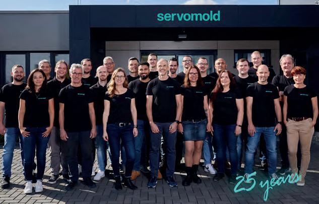 Nel 2023, Servomold GmbH & Co. KG ha festeggiato 25 anni di successi come specialista nell’automazione degli stampi a iniezione. Le radici dell’azienda risalgono al maggio 1998, quando Bianca e Thomas Meister fondarono Exacon Verwaltungs GmbH nella loro casa nella regione di Odenwald, in Germania, offrendo servizi relativi alla progettazione e allo sviluppo di stampi a iniezione. Ancora oggi sotto la loro gestio- ne, la loro azienda, con 28 dipendenti, è uno dei più innovativi ed efficienti sviluppatori, produttori e fornitori di servosistemi per lo stampaggio a iniezione.
