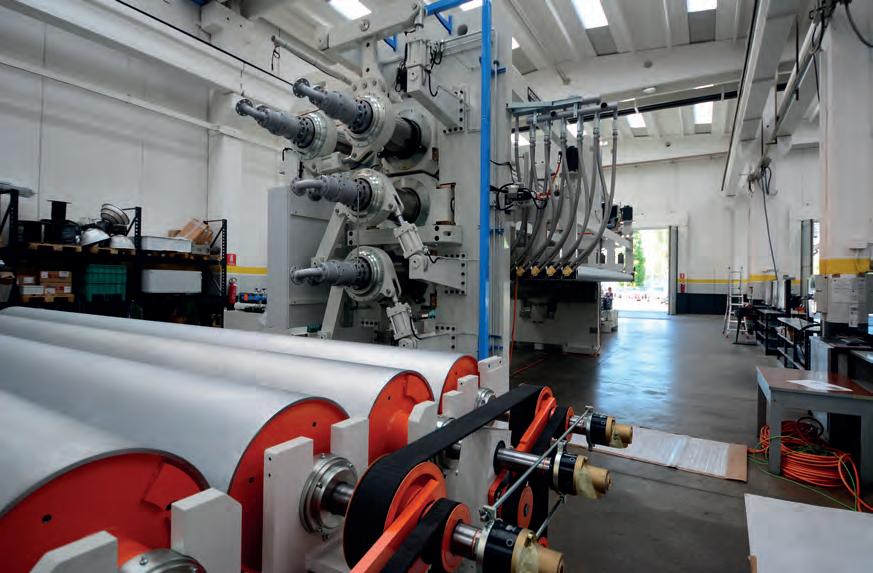 Gli impianti che l’azienda realizza spaziano dalla lavorazione delle materie plastiche come PVC, PP, PE, TPO e TPU per la produzione di film plastificato, film multistrato e rinforzato film multistrato per pavimenti, alla produzione di tessuto gommato per pneumatici, nastri trasportatori e diversi componenti in gomma.