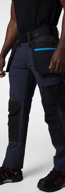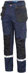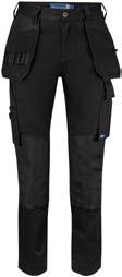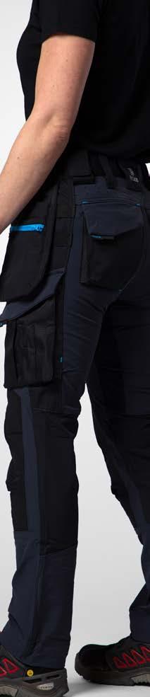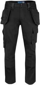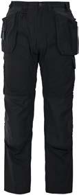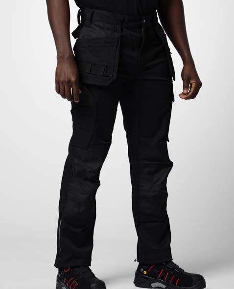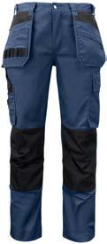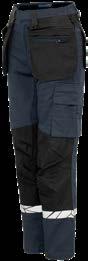 Pantaloni multitasche. Tasche flottanti a scomparsa rinforzate in Cordura® Tasche posteriori rinforzate. Scomparti porta attrezzi rinforzati. Tasca per smartphone. Ginocchia pre-sagomate in Kevlar con porta ginocchiere regolabili. Cavallo in tessuto elasticizzato. Protezione ergonomica in vita. Inserti in Cordura® Dettagli rifrangenti attonro alle gambe.