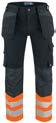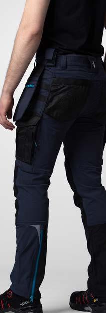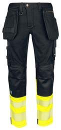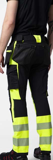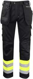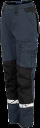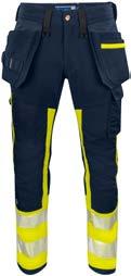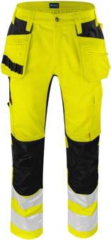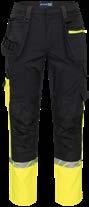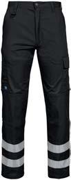 Pantaloni in canvas. Tasche flottanti. Scomparti e tasche porta attrezzi. Tasca per smartphone e supporto interno per badge. Ginocchia sagomate con porta ginocchiere. Inserti elasticizzati. Profili e inserti rifrangenti in Cordura