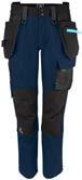 Pantaloni tecnici in cotone elasticizzato. Tasche flottanti foderate in Cordura® facilmente removibili. Vari scomparti e tasche porta utensili. Tasca per smartphone con chiusura magnetica. Tasche posteriori foderate in Cordura Ginocchia sagomate. Porta ginocchiere regolabile.