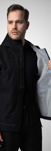 Tessuto ad alta traspirabilità, espelle efficacemente umidità e calore in eccesso verso l’esterno. Resiste a pioggia, neve, vento. Protettivo ed elastico, molto adatto per capi esterni (terzo strato).