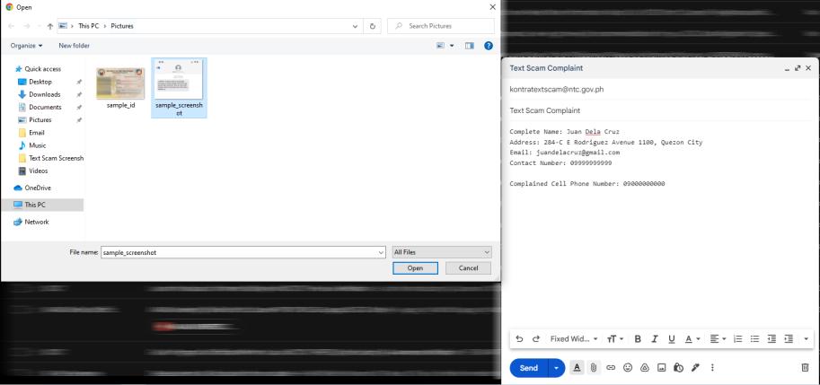 1. Submit the following information by e-mail at kontratextscam@ntc.gov.ph: E mail to: kontratextscam@ntc.gov.ph