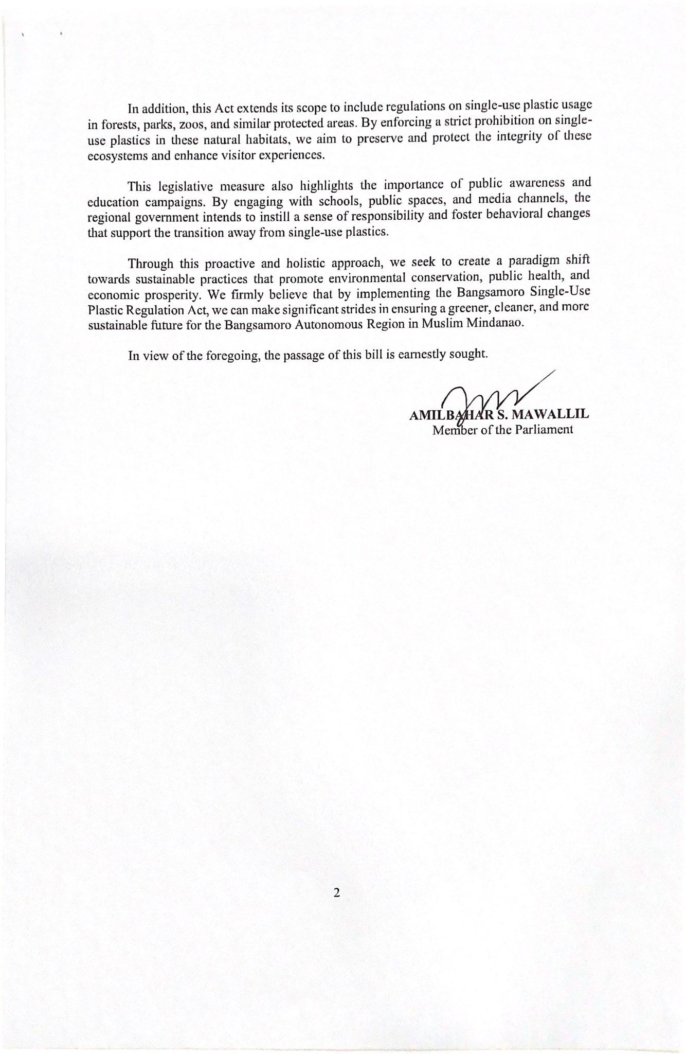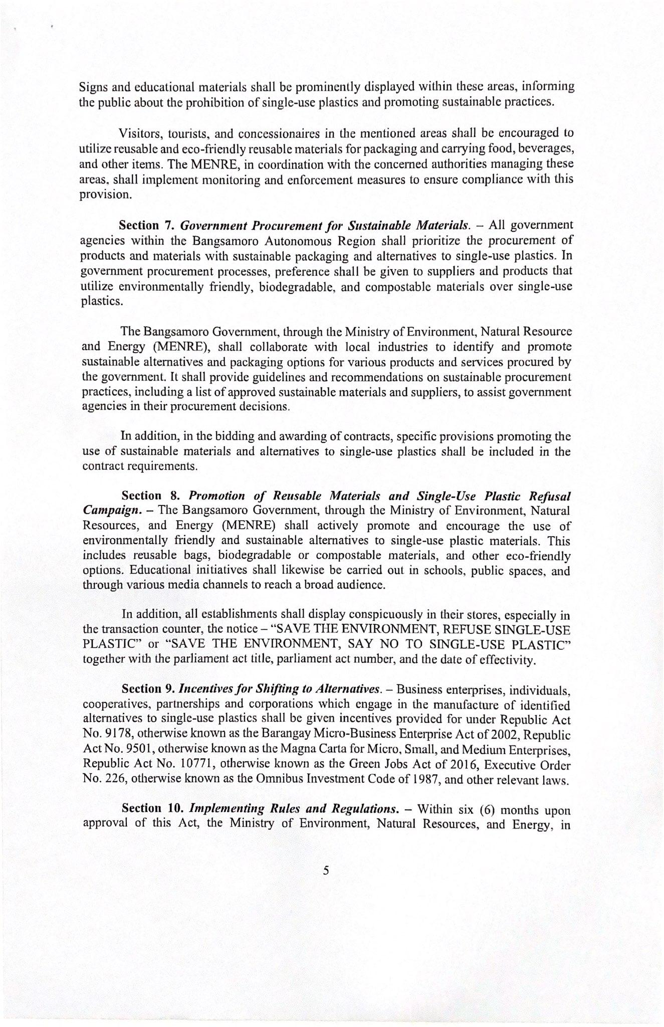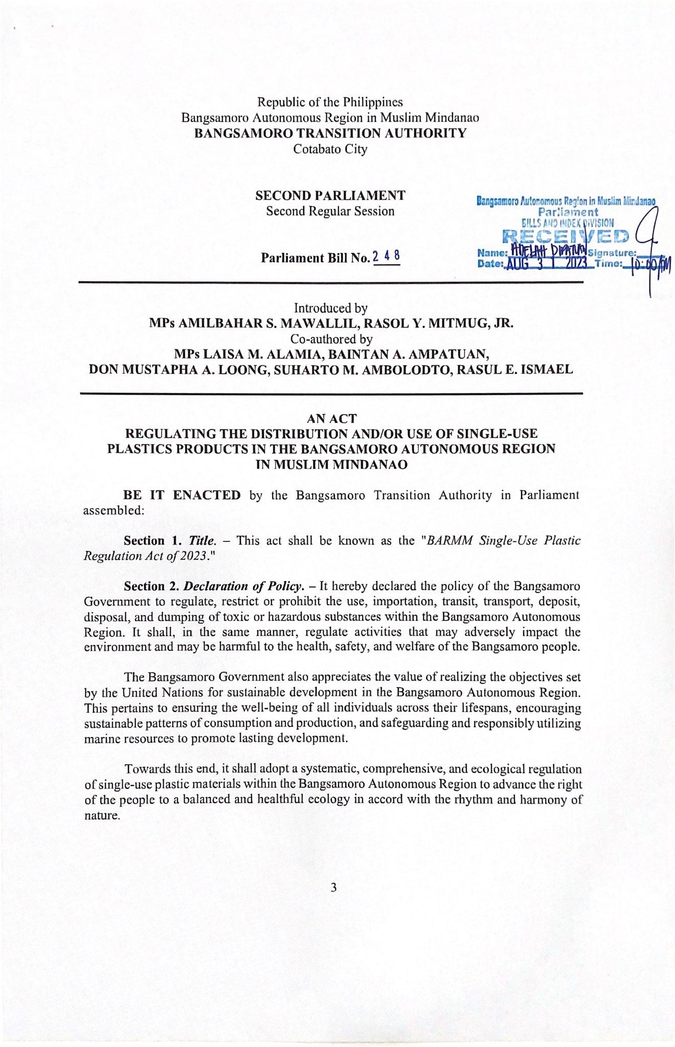 Regulating the distribution and/or use of single-use plastics products - BARMM