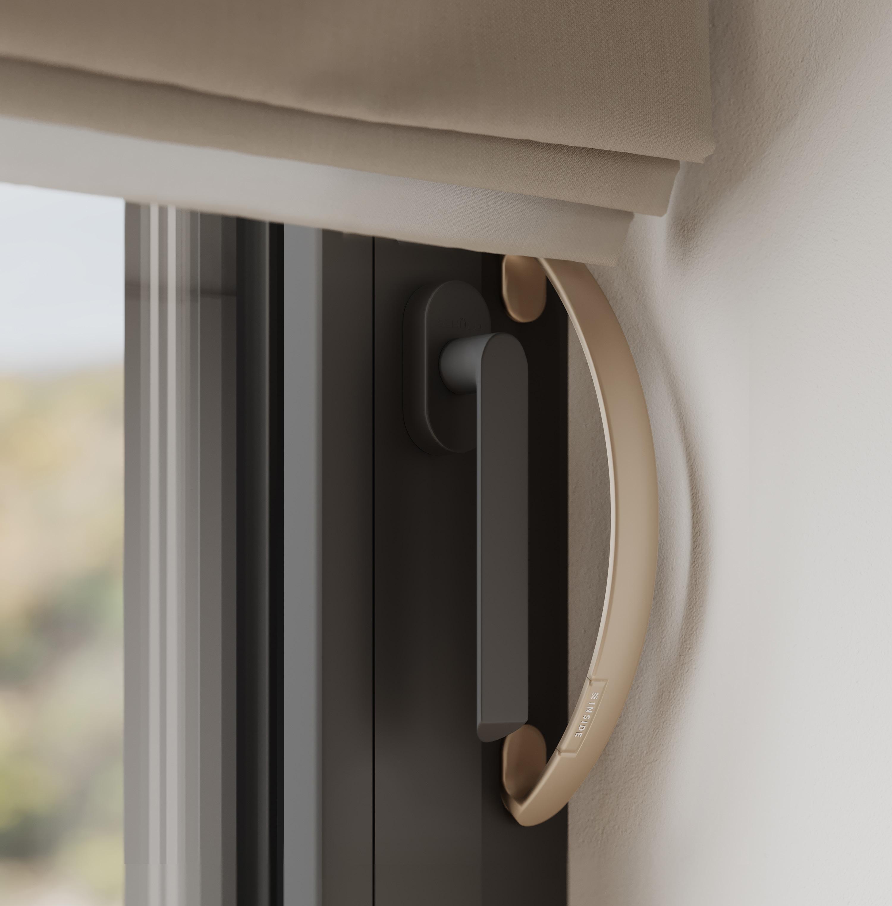 The Arc crée un pont à côté de la poignée de la fenêtre ou de la porte, empêchant ainsi le rideau de se coincer lors du levage. Le rideau glisse en douceur le long de l’Arc, ce qui évite que les crochets se détachent ou que le tissu se déchire. Un produit entièrement unique sur le marché, exclusivement disponible chez Inside.