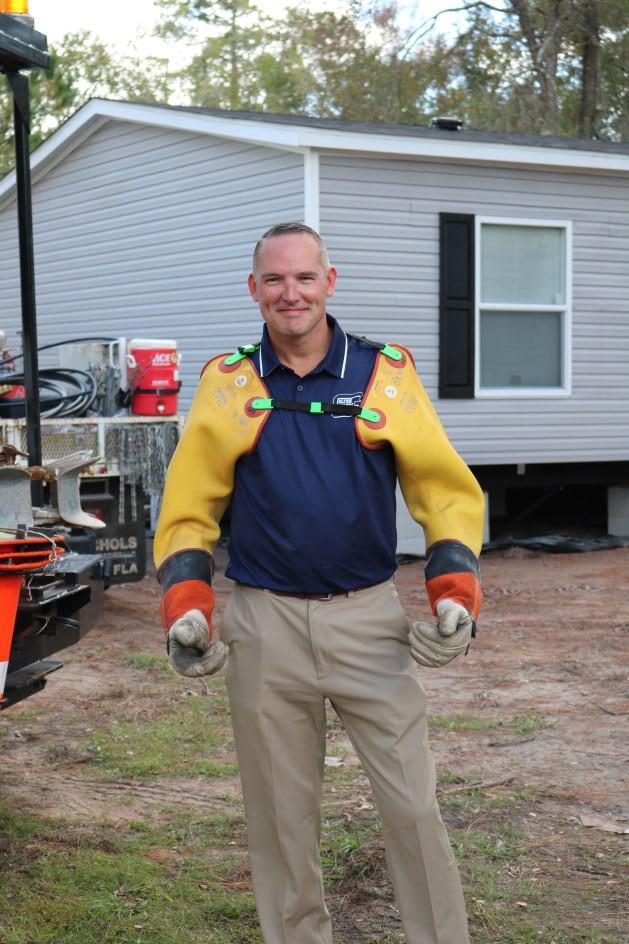 For the second year in a row, OREMC participated in the Glynn County Teacher Externship Program, hosting five Glynn County educators over two days, immersing them in the day-to-day operations and getting to know the people behind the power. From a ride in a bucket, feeling the weight of the lineworker’s utility belt, being briefed on the “big screen” in the Control Center and seeing a demonstration of a self-healing electric system of the future, the educators quickly realized there was more to electricity than simply flipping a switch. Pictured is Eric Benson, Glynn County Assistant Superintendent, Grades 6 12, getting a feel for the lineworker’s rubber gloves and sleeves.