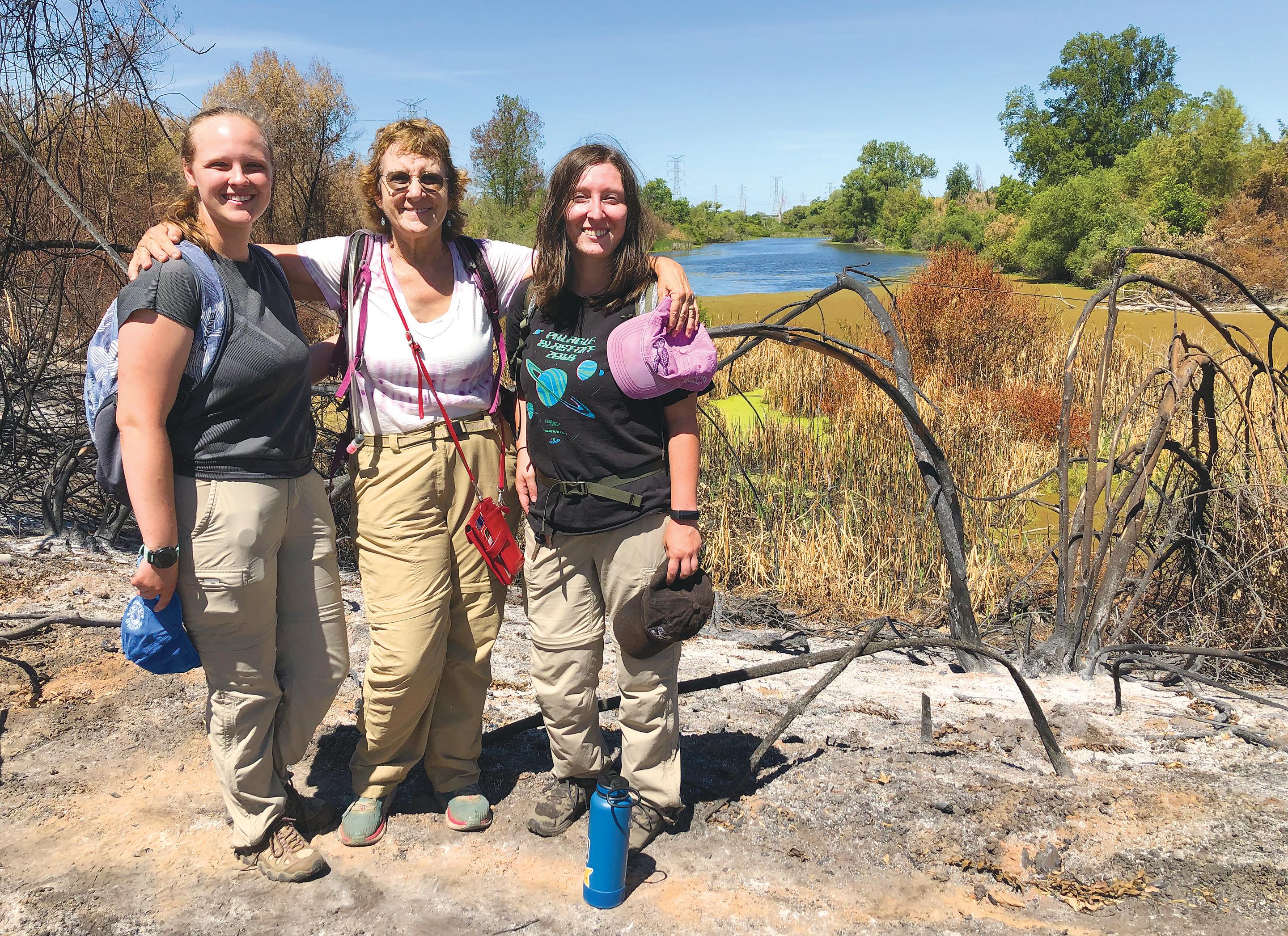 Stevens and her students plant fi re- and drought-resistant native grasses, pull invasive weeds, and clear trash from homeless camps and other human activities, while monitoring and researching the abundant wildlife.
