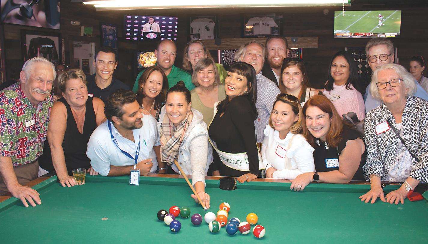 6. Carmichael Chamber of Commerce chums celebrate the opening of Time Out Tavern on Fair Oaks Boulevard. Owner (with cue) is Christina DeCelle.