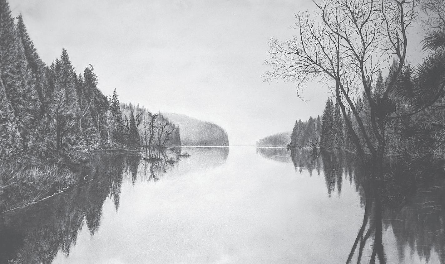 Explore large-format pieces made with brick charcoal and printmaking paper.