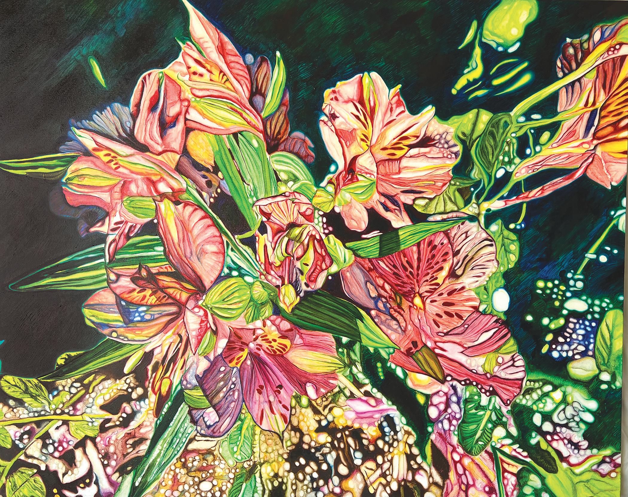 Born in East Sacramento, Thomas Nardinelli developed an appreciation for nature's bounty early in life. He later translated his passion into paintings where he utilizes vibrant colors and abstract forms to portray the intricate shapes and layers in flowers. He earned an MFA at Sac State in 1973. Shown: “Dahlias,” oil on canvas, 4 feet by 5 feet. The original is available for sale. Visit tomnardinelli.com. “Blooming Brilliance” featuring the art of Thomas Nardinelli is on display July 5–28 at Twisted Track Gallery at 1730 12th St.