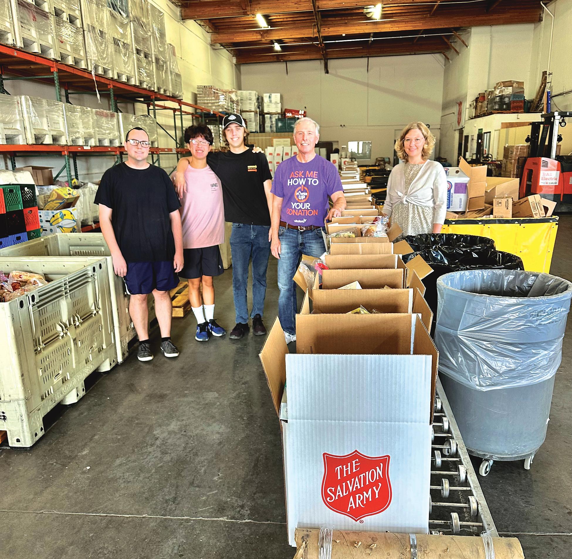 Volunteers pack boxes of donated food for The Salvation Army's food distribution program.
